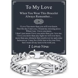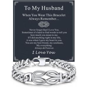ChainsHouse Square Love Knot Bracelets for Men Braided Leather Stainless Steel Infinity Bracelets with Love Message Card Aniversary Birthday Gift for Men/Love/Husband/Dad(10-To My Husband-Steel)