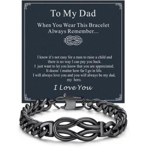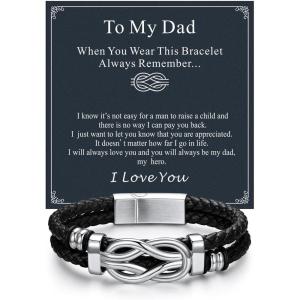 ChainsHouse Square Love Knot Bracelets for Men Braided Leather Stainless Steel Infinity Bracelets with Love Message Card Aniversary Birthday Gift for Men/Love/Husband/Dad(07-To My Dad-Braided)