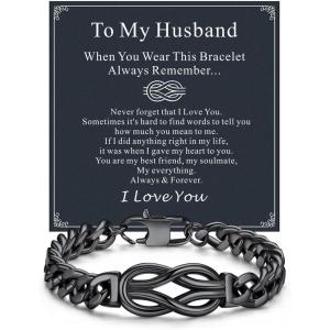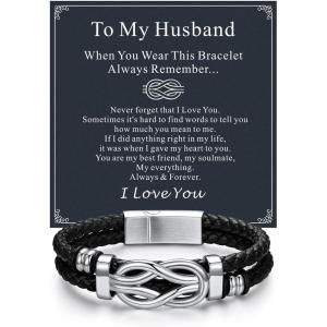 ChainsHouse Square Love Knot Bracelets for Men Braided Leather Stainless Steel Infinity Bracelets with Love Message Card Aniversary Birthday Gift for Men/Love/Husband/Dad(03-To My Husband-Braided)