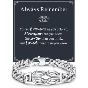 ChainsHouse Square Love Knot Bracelets for Men Braided Leather Stainless Steel Infinity Bracelets with Love Message Card Aniversary Birthday Gift for Men/Love/Husband/Dad(13-Always Remember-Steel)