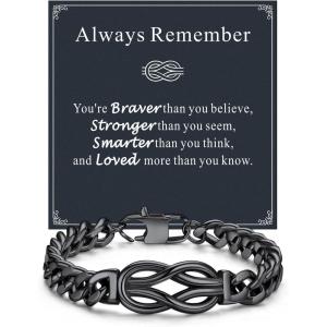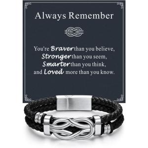 ChainsHouse Square Love Knot Bracelets for Men Braided Leather Stainless Steel Infinity Bracelets with Love Message Card Aniversary Birthday Gift for Men/Love/Husband/Dad(06-Always Remember-Braided)