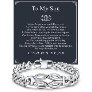 ChainsHouse Square Love Knot Bracelets for Men Braided Leather Stainless Steel Infinity Bracelets with Love Message Card Aniversary Birthday Gift for Men/Love/Husband/Dad(11-To My Son-Steel)