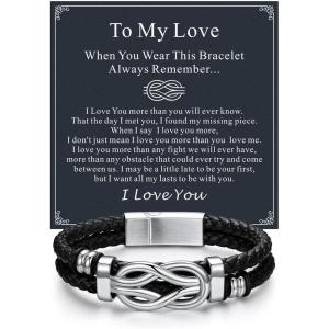 ChainsHouse Square Love Knot Bracelets for Men Braided Leather Stainless Steel Infinity Bracelets with Love Message Card Aniversary Birthday Gift for Men/Love/Husband/Dad(01-To My Love-Braided)