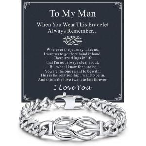 ChainsHouse Square Love Knot Bracelets for Men Braided Leather Stainless Steel Infinity Bracelets with Love Message Card Aniversary Birthday Gift for Men/Love/Husband/Dad(09-To My Man-Steel)