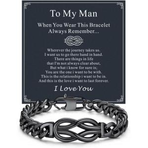ChainsHouse Square Love Knot Bracelets for Men Braided Leather Stainless Steel Infinity Bracelets with Love Message Card Aniversary Birthday Gift for Men/Love/Husband/Dad(16-To My Man-Black)