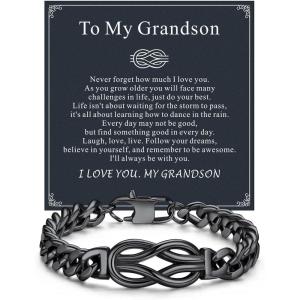 ChainsHouse Square Love Knot Bracelets for Men Braided Leather Stainless Steel Infinity Bracelets with Love Message Card Aniversary Birthday Gift for Men/Love/Husband/Dad(19-To My Grandson-Black)