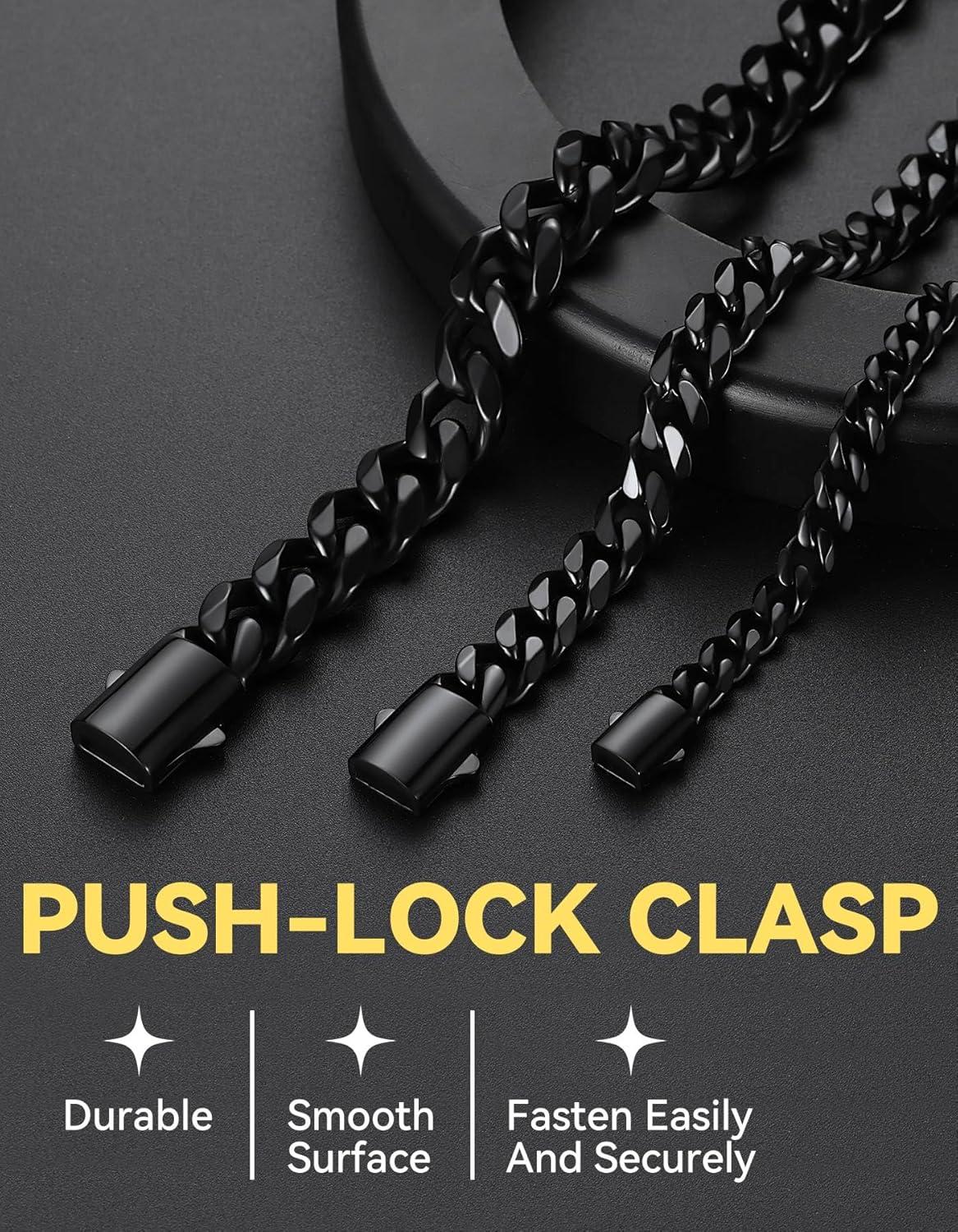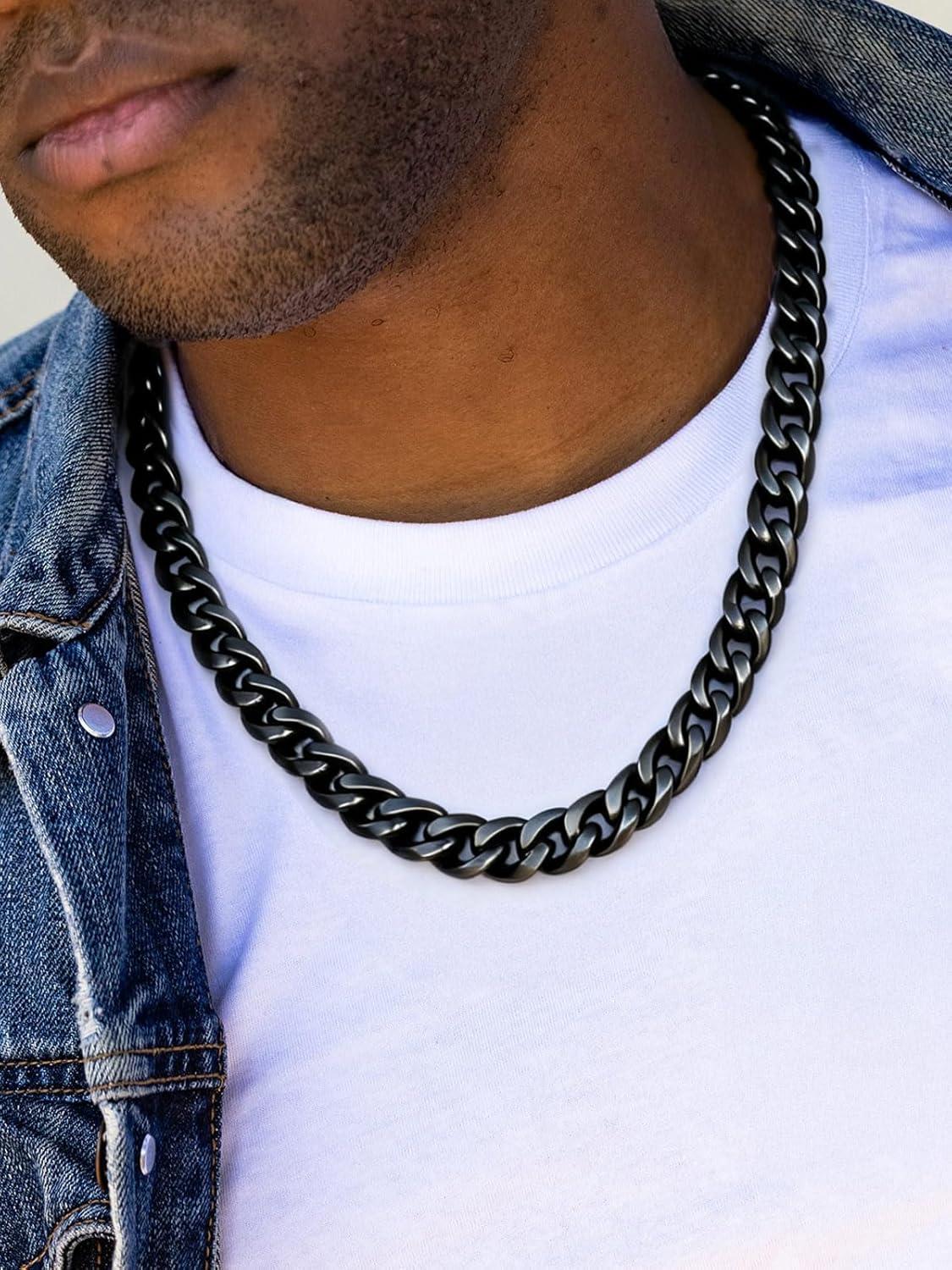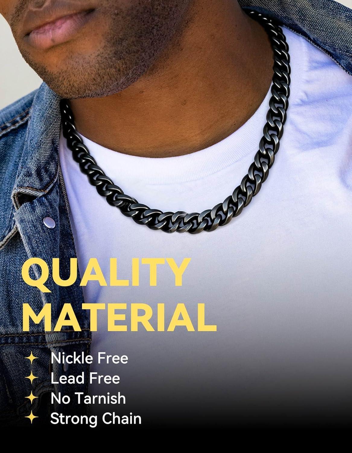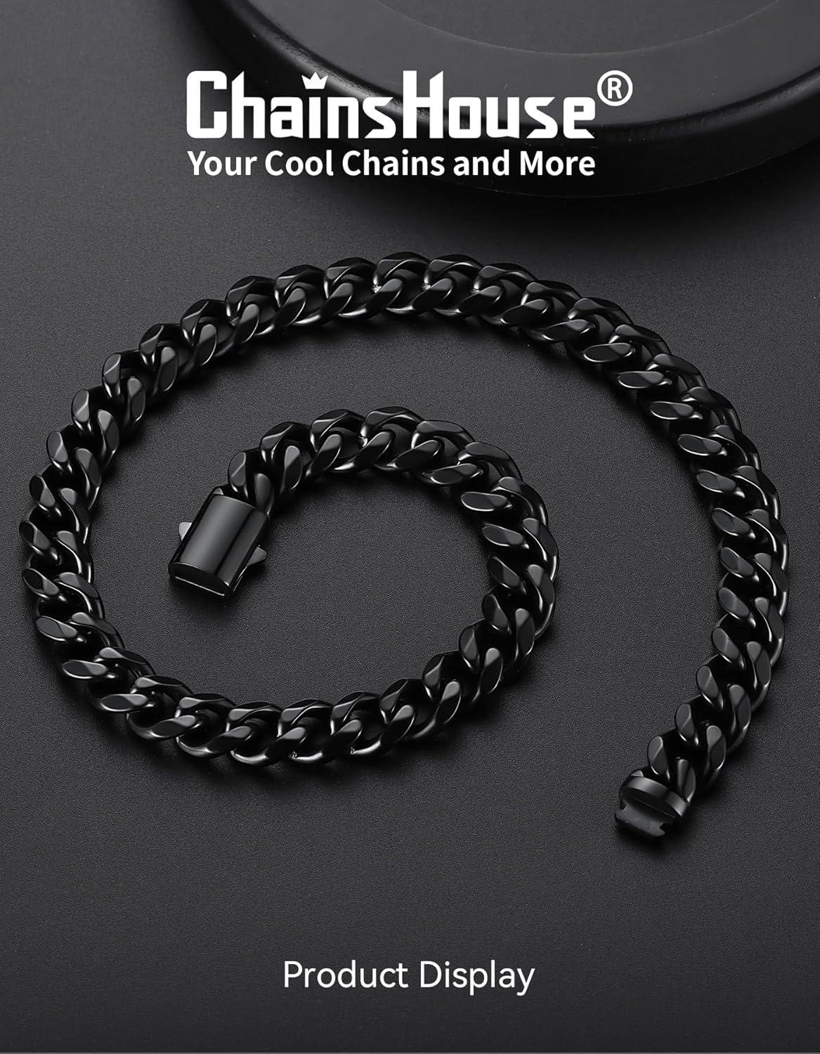 ChainsHouse Cuban Link Chain for Men, Stainless Steel Cuban Link Chain, Black/ 14K Gold Plated Cuban Chain Necklace, 6mm/9mm/12mm Width, Hip Hop Mens Jewelry, 18″-30″, Send Gift Box(i.12mm width-black)