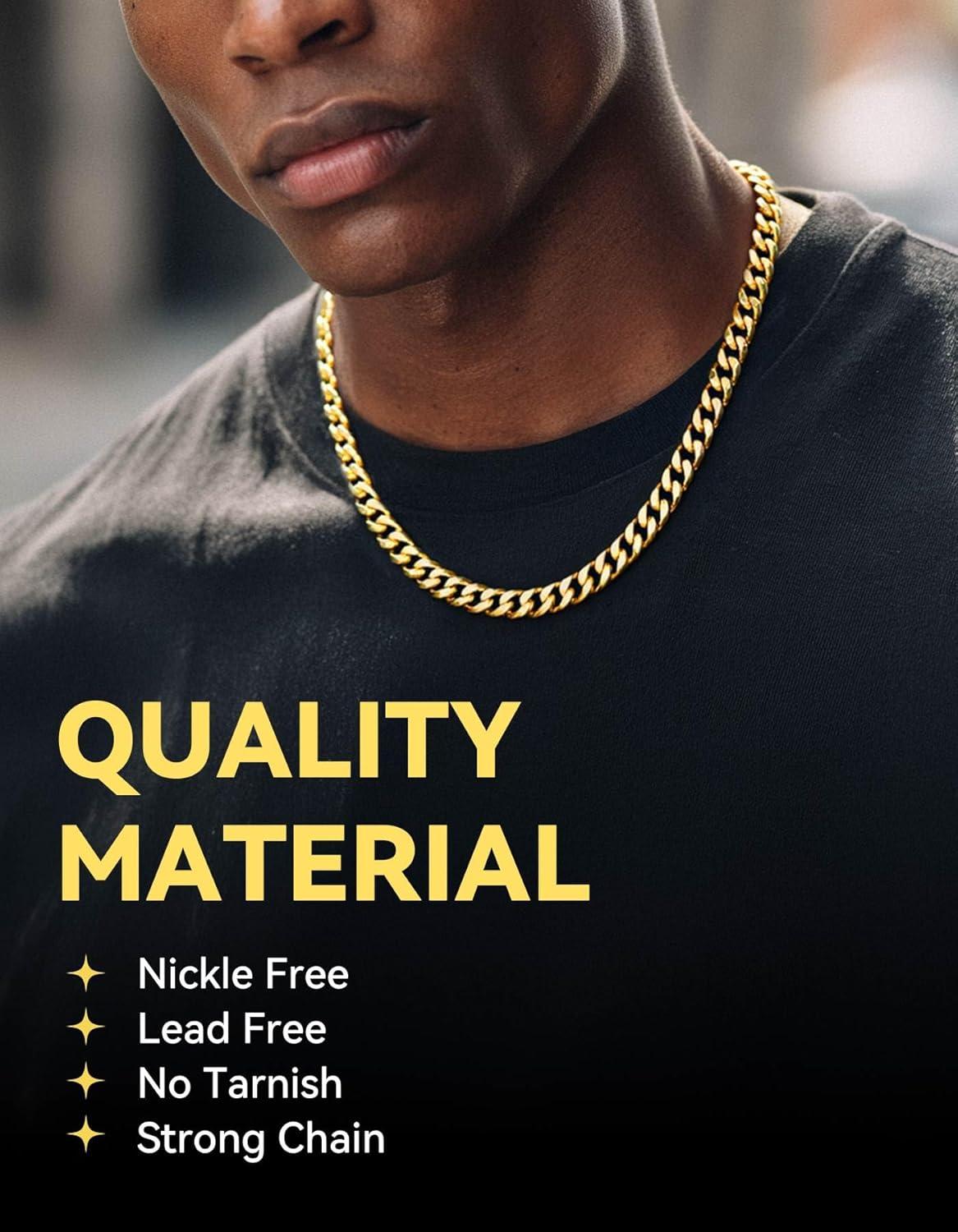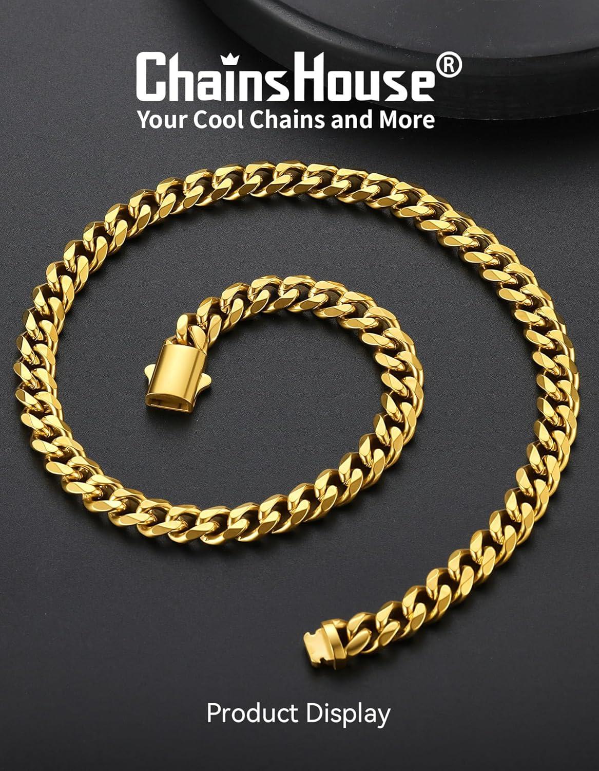 ChainsHouse Cuban Link Chain for Men, Stainless Steel Cuban Link Chain, Black/ 14K Gold Plated Cuban Chain Necklace, 6mm/9mm/12mm Width, Hip Hop Mens Jewelry, 18″-30″, Send Gift Box(e.9mm width-gold)