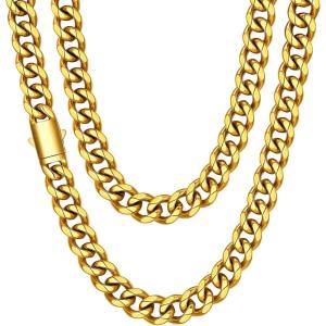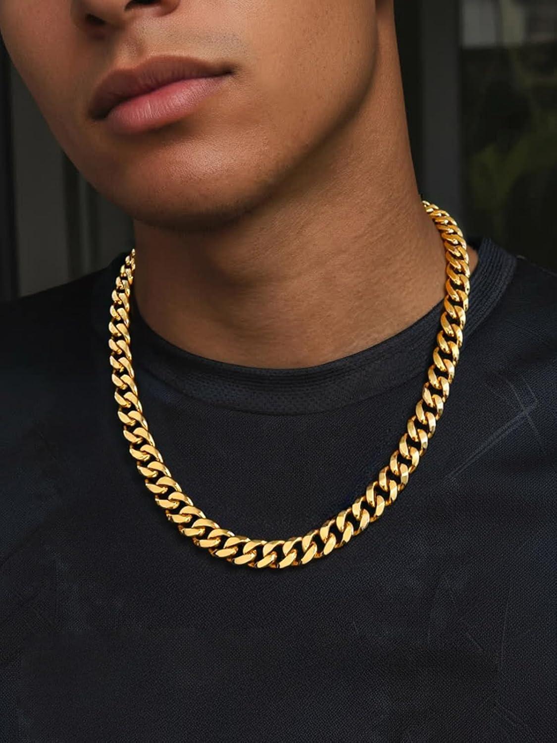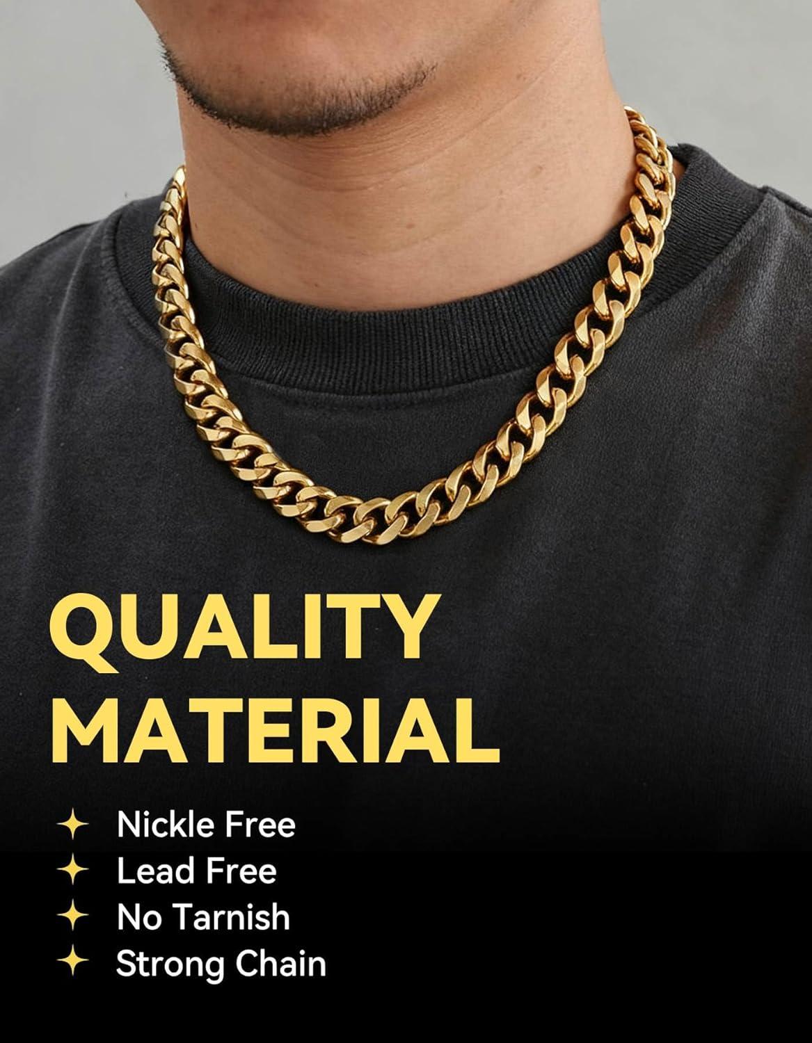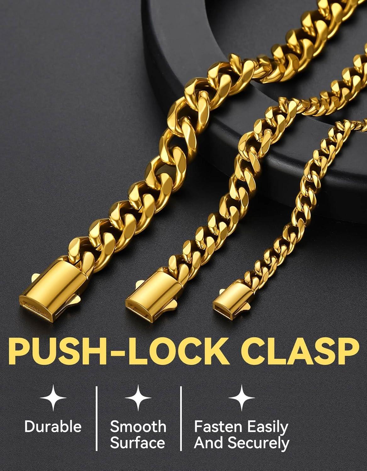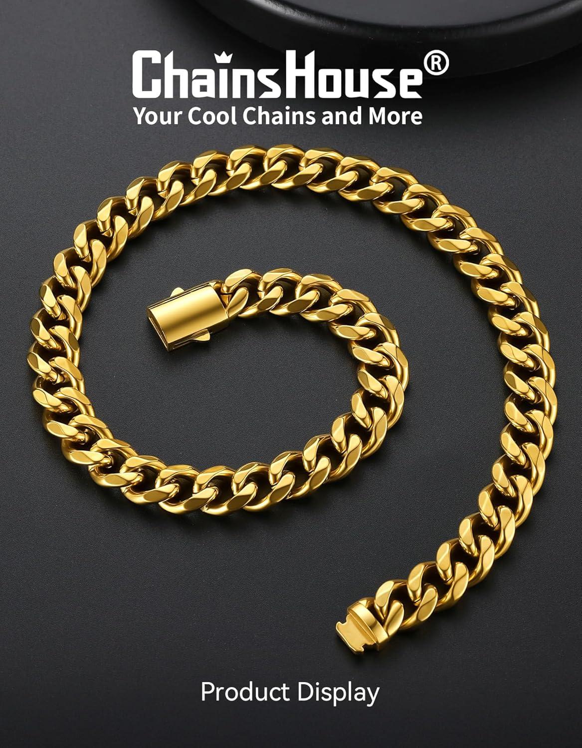 ChainsHouse Cuban Link Chain for Men, Stainless Steel Cuban Link Chain, Black/ 14K Gold Plated Cuban Chain Necklace, 6mm/9mm/12mm Width, Hip Hop Mens Jewelry, 18″-30″, Send Gift Box(f.12mm width-gold)