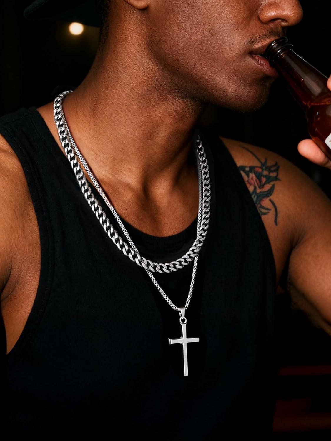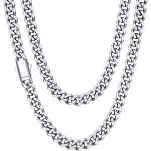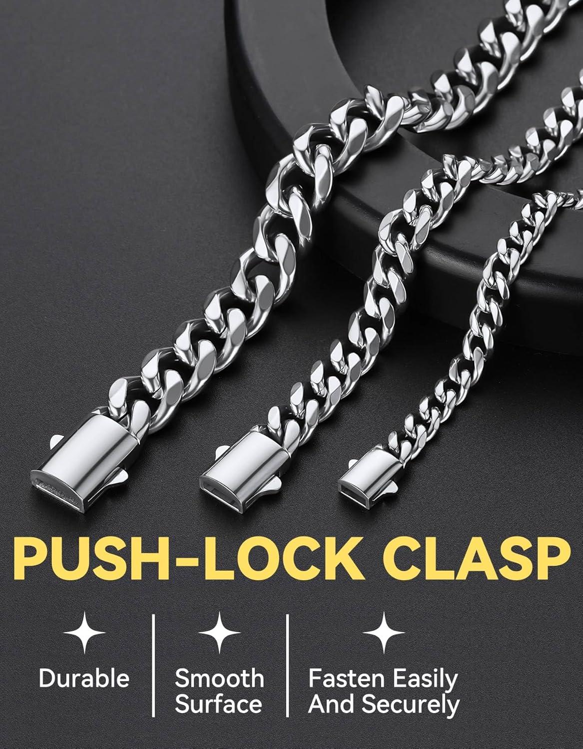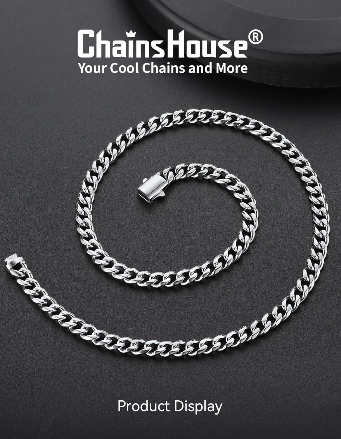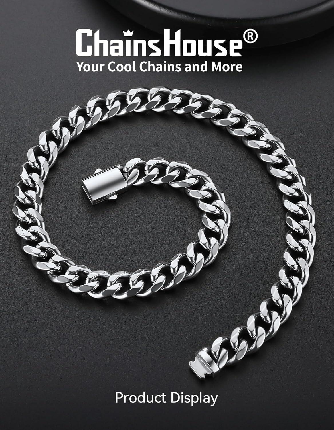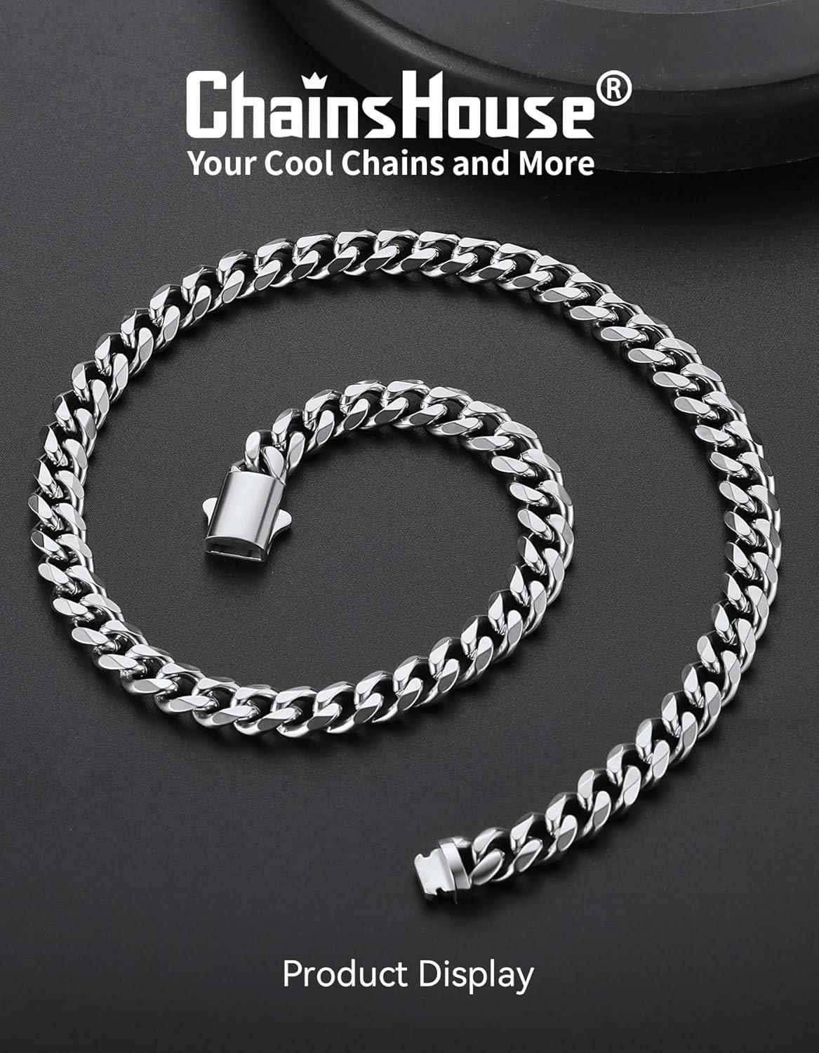 ChainsHouse Cuban Link Chain for Men, Stainless Steel Cuban Link Chain, Black/ 14K Gold Plated Cuban Chain Necklace, 6mm/9mm/12mm Width, Hip Hop Mens Jewelry, 18″-30″, Send Gift Box(b. 9mm width-steel)