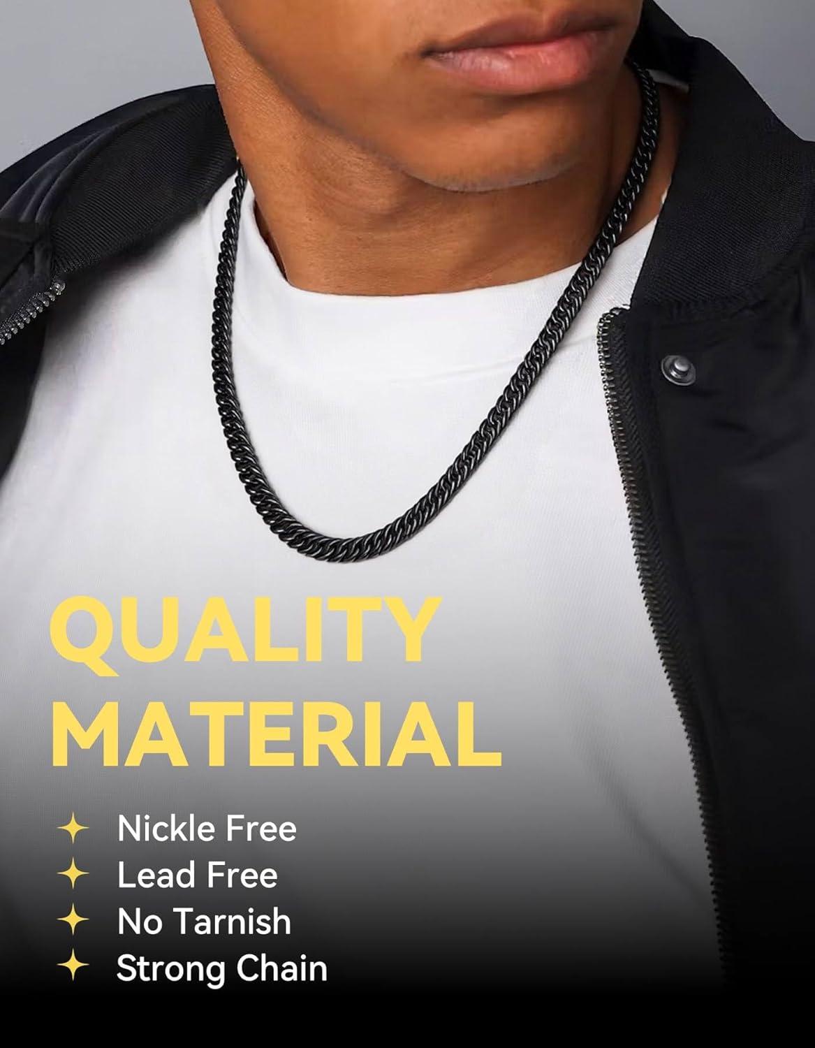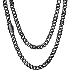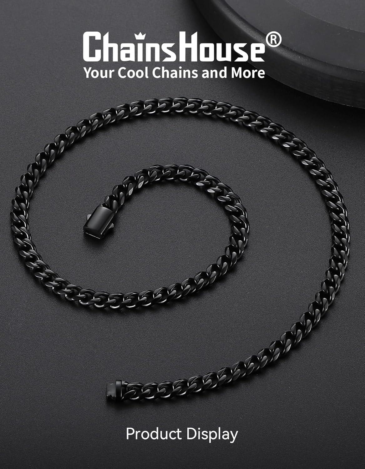 ChainsHouse Cuban Link Chain for Men, Stainless Steel Cuban Link Chain, Black/ 14K Gold Plated Cuban Chain Necklace, 6mm/9mm/12mm Width, Hip Hop Mens Jewelry, 18″-30″, Send Gift Box(g.6mm width-black)