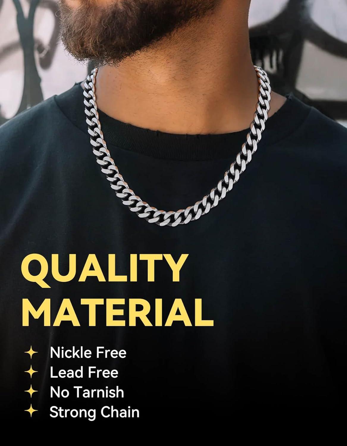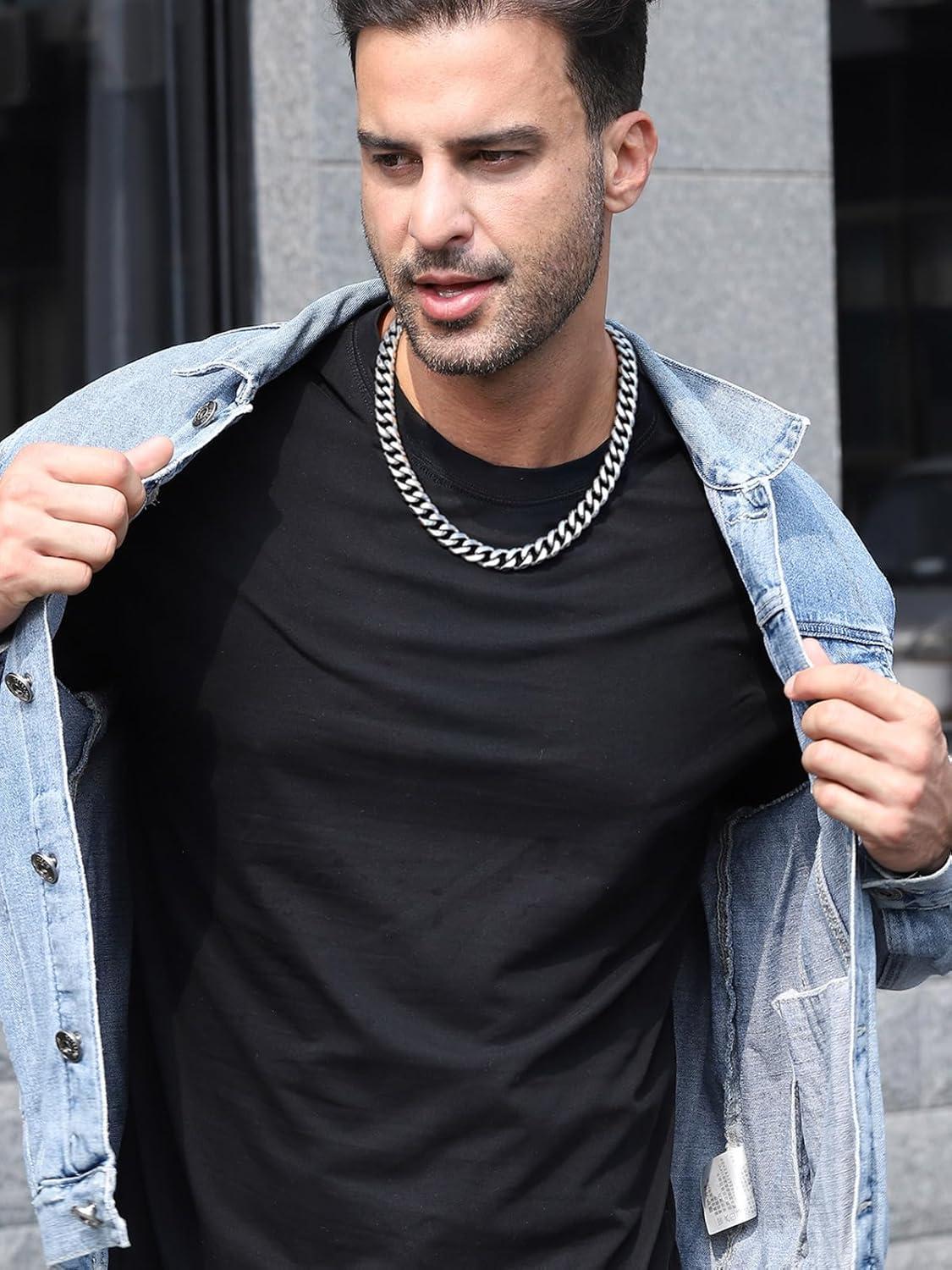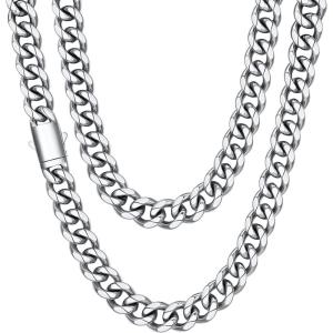 ChainsHouse Cuban Link Chain for Men, Stainless Steel Cuban Link Chain, Black/ 14K Gold Plated Cuban Chain Necklace, 6mm/9mm/12mm Width, Hip Hop Mens Jewelry, 18″-30″, Send Gift Box(c. 12mm width-steel)
