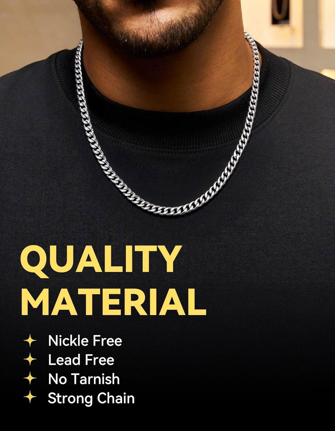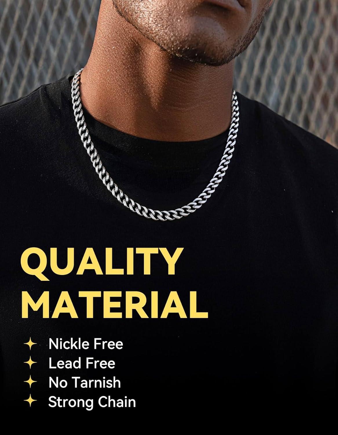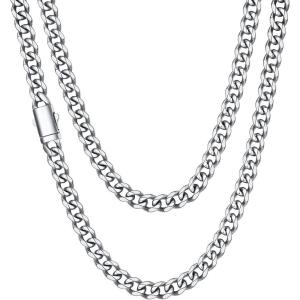 ChainsHouse Cuban Link Chain for Men, Stainless Steel Cuban Link Chain, Black/ 14K Gold Plated Cuban Chain Necklace, 6mm/9mm/12mm Width, Hip Hop Mens Jewelry, 18″-30″, Send Gift Box(a. 6mm width-steel)