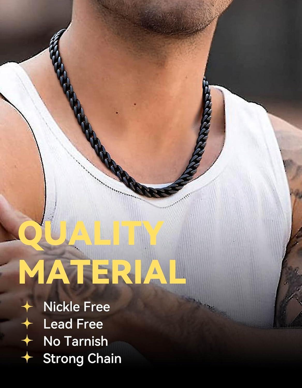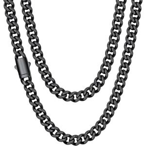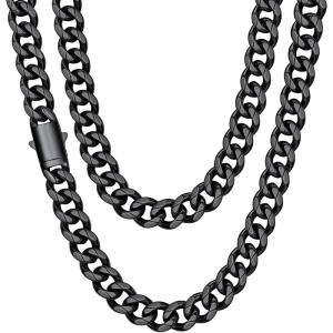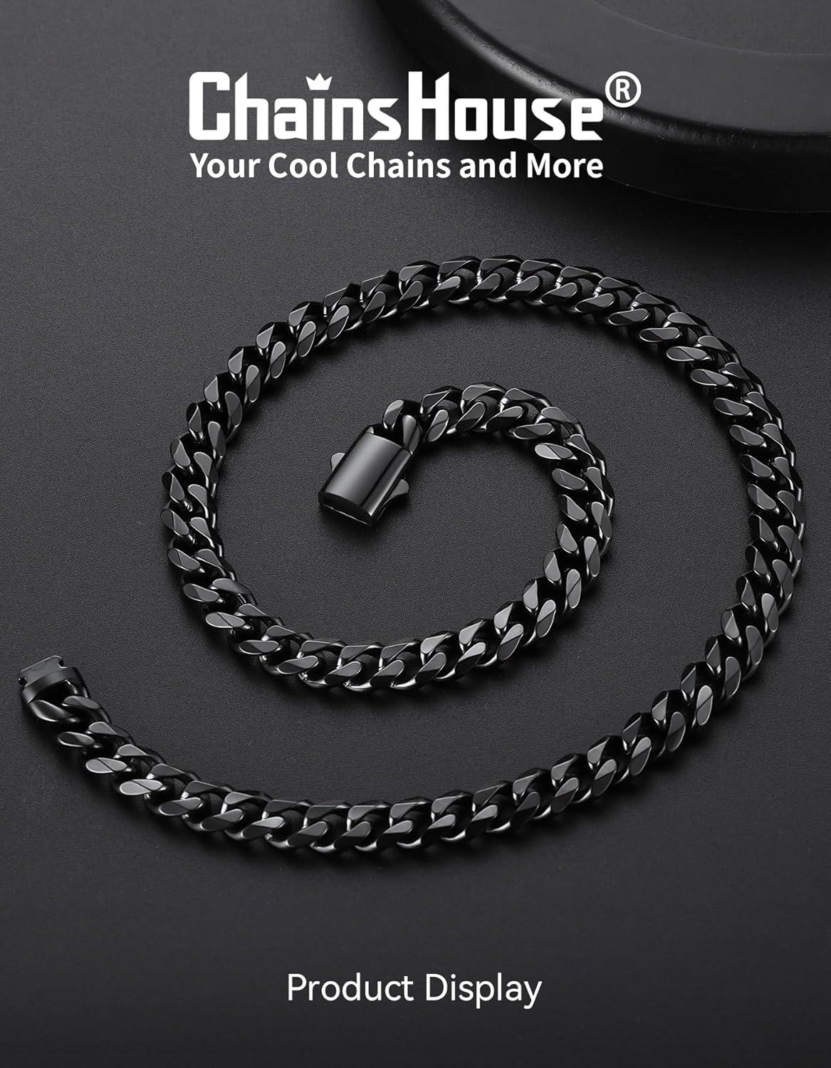 ChainsHouse Cuban Link Chain for Men, Stainless Steel Cuban Link Chain, Black/ 14K Gold Plated Cuban Chain Necklace, 6mm/9mm/12mm Width, Hip Hop Mens Jewelry, 18″-30″, Send Gift Box(h.9mm width-black)