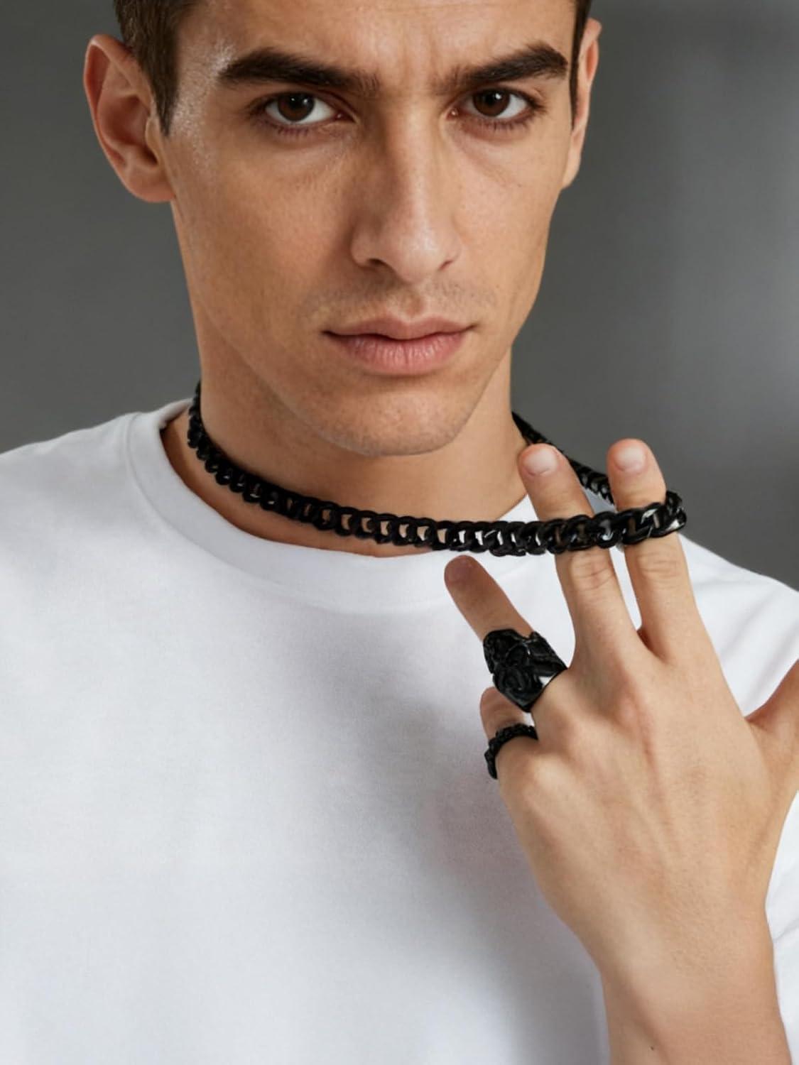 ChainsHouse Bracelet for Men Franco Curb Chain Link with Sturdy Clasp, 7.5/8.3/9 Inches Length 6/10/12MM Width Bracelet Chain Gift for Dad, Husband, Father’s Day, Birthday(M: 6mm-Black-Custom)
