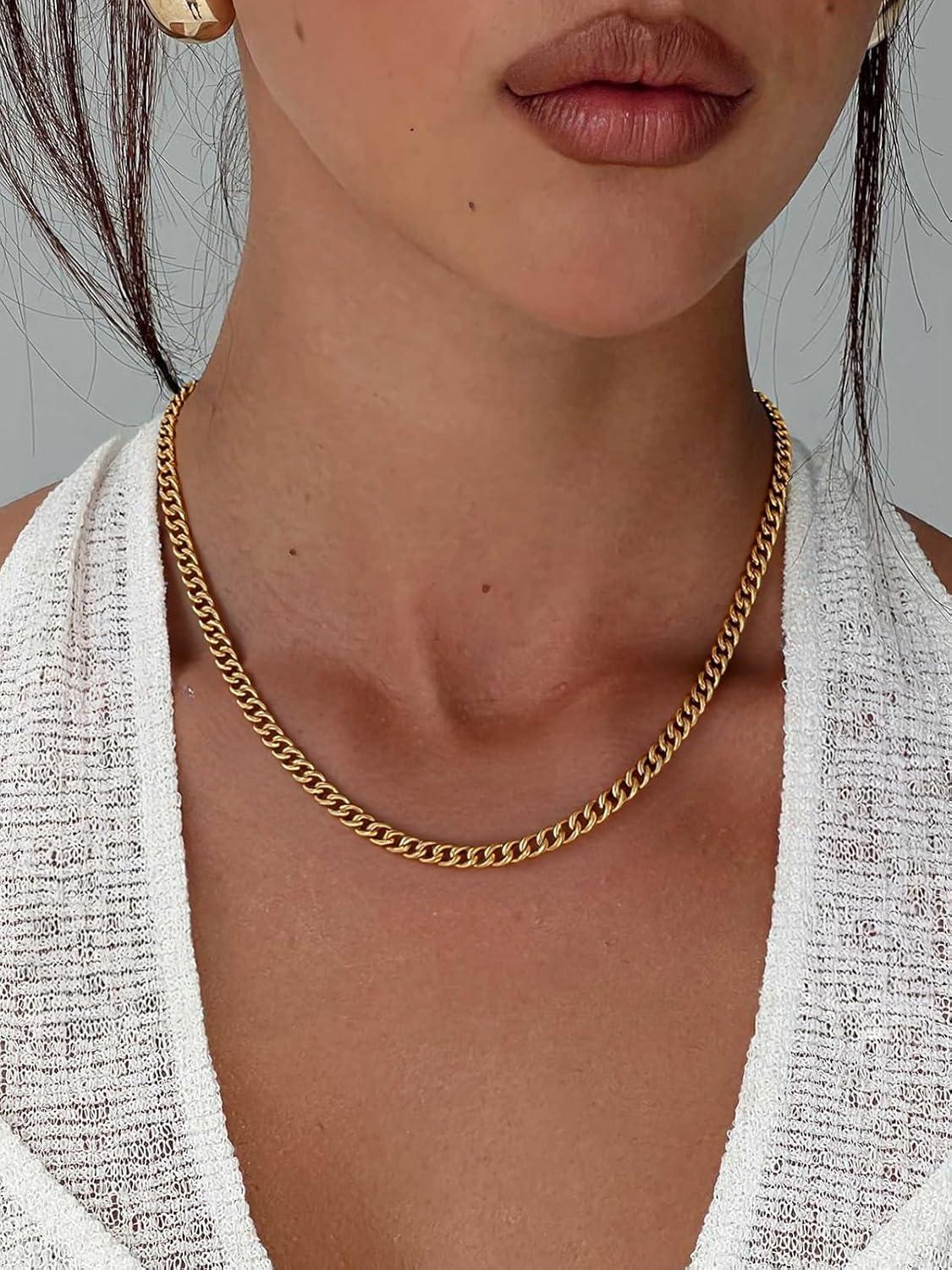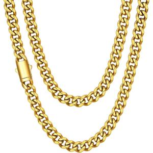 ChainsHouse Cuban Link Chain for Men, Stainless Steel Cuban Link Chain, Black/ 14K Gold Plated Cuban Chain Necklace, 6mm/9mm/12mm Width, Hip Hop Mens Jewelry, 18″-30″, Send Gift Box(d. 6mm width-gold)