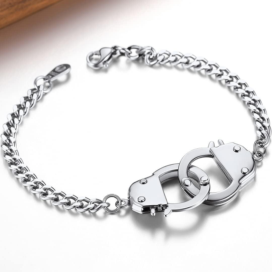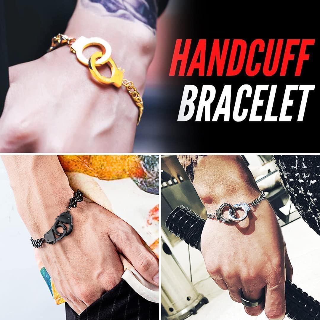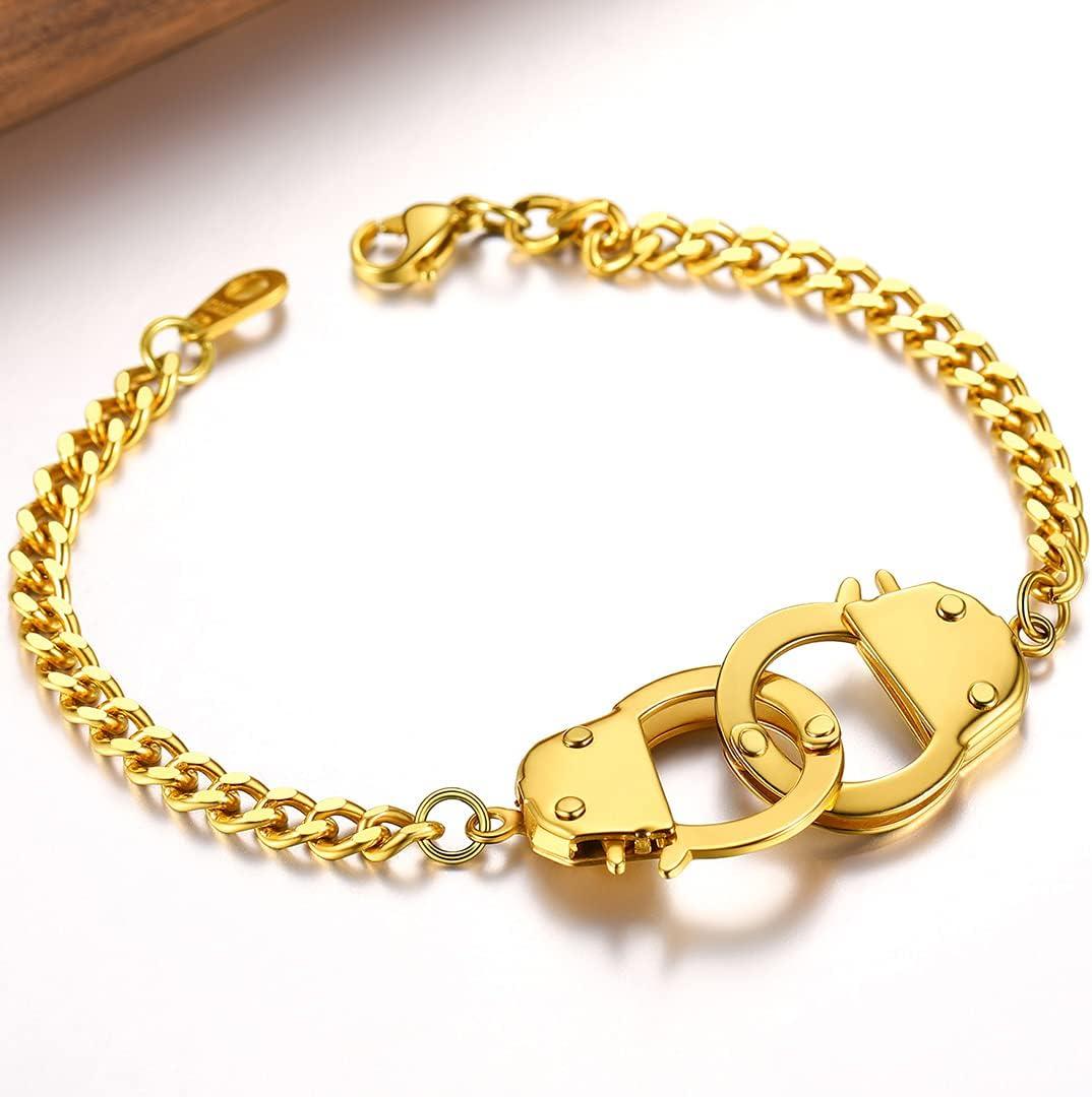 ChainsHouse Handcuff Link Bracelet for Men Women, 18K Gold/Black Metal/Stainless Steel Biker Curb Chain Friendship Best Friends Statement Bangles Bracelets, Send Gift Box(D: Stainless-Custom)