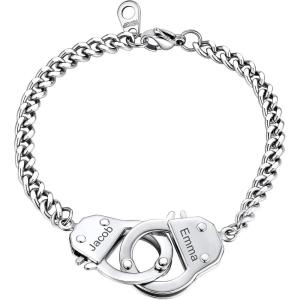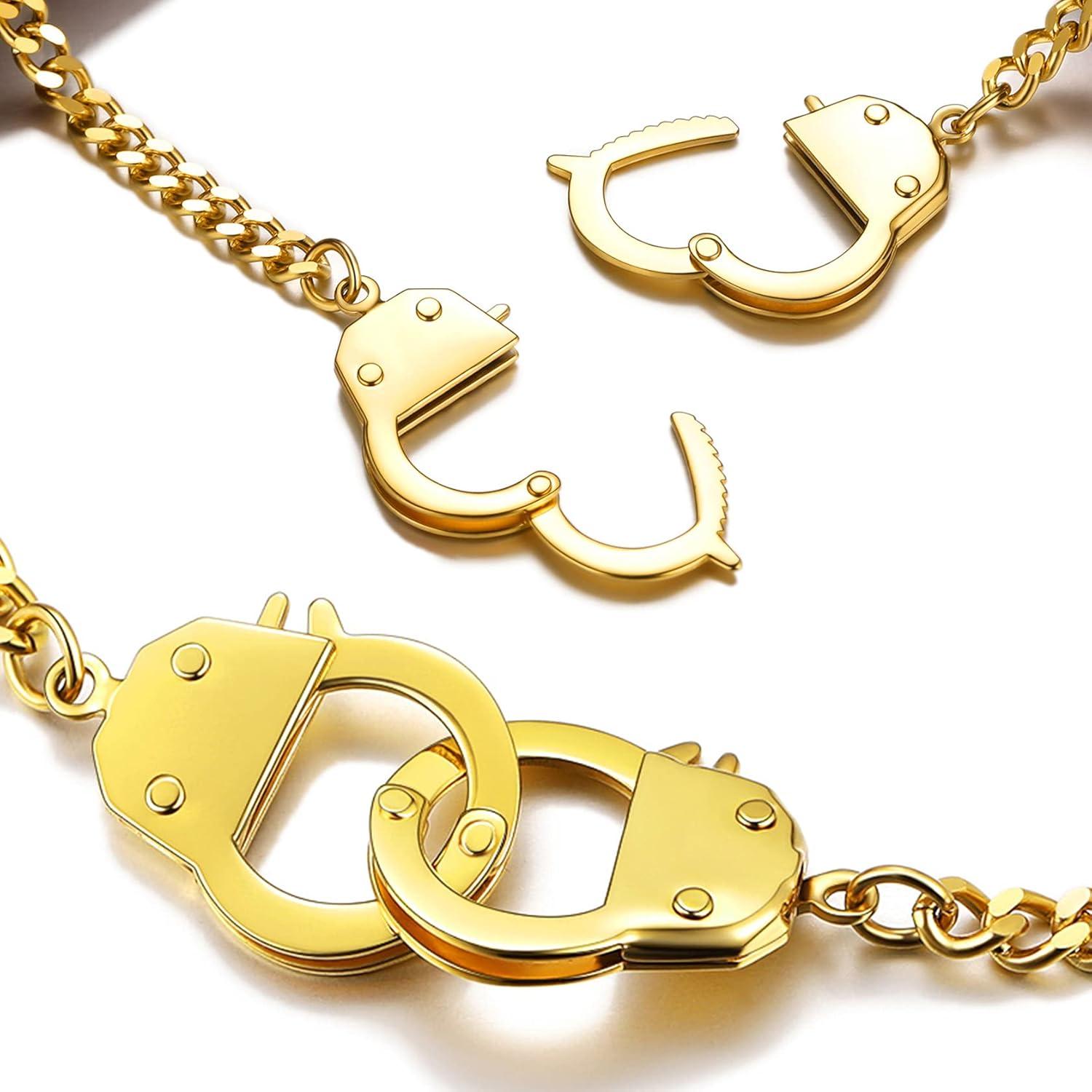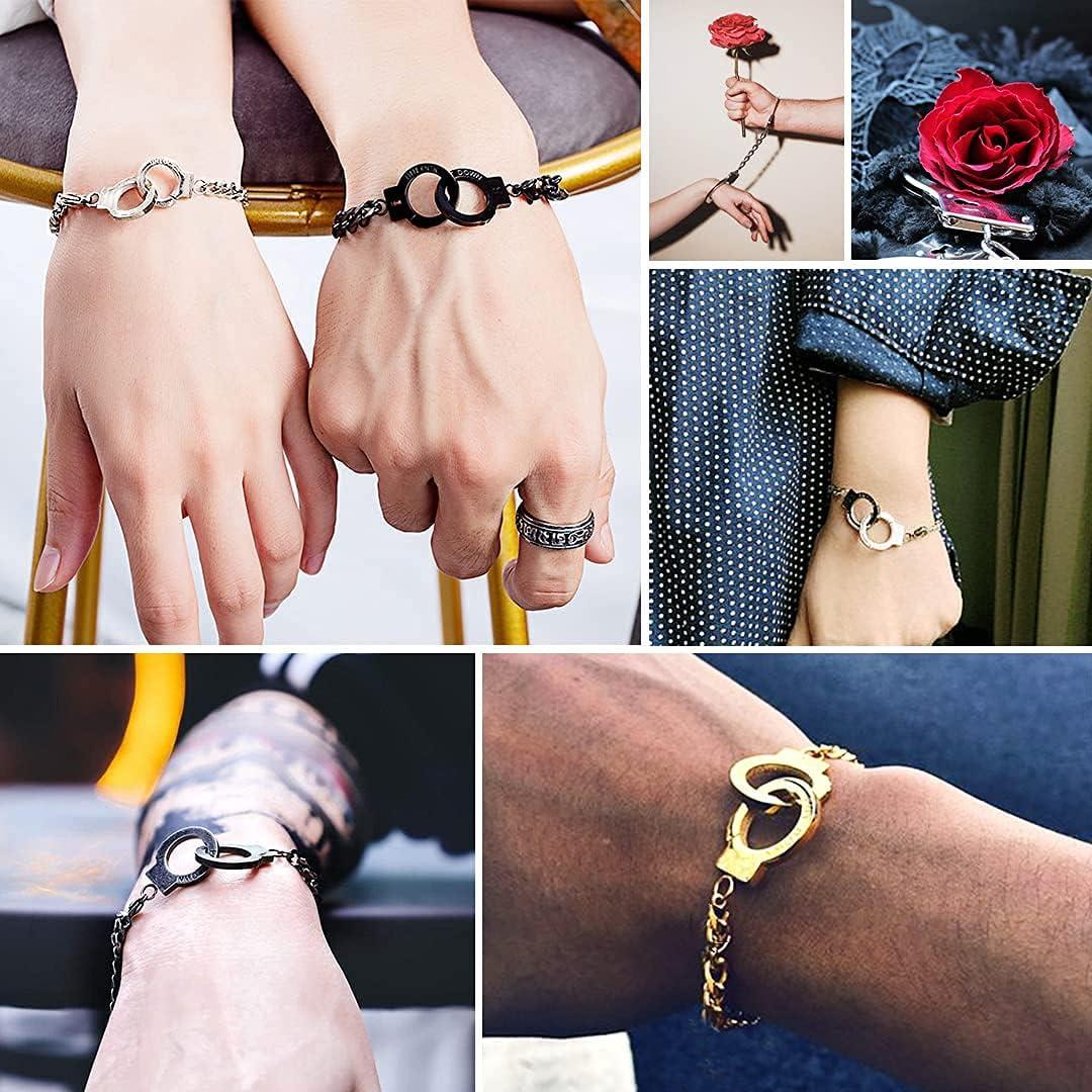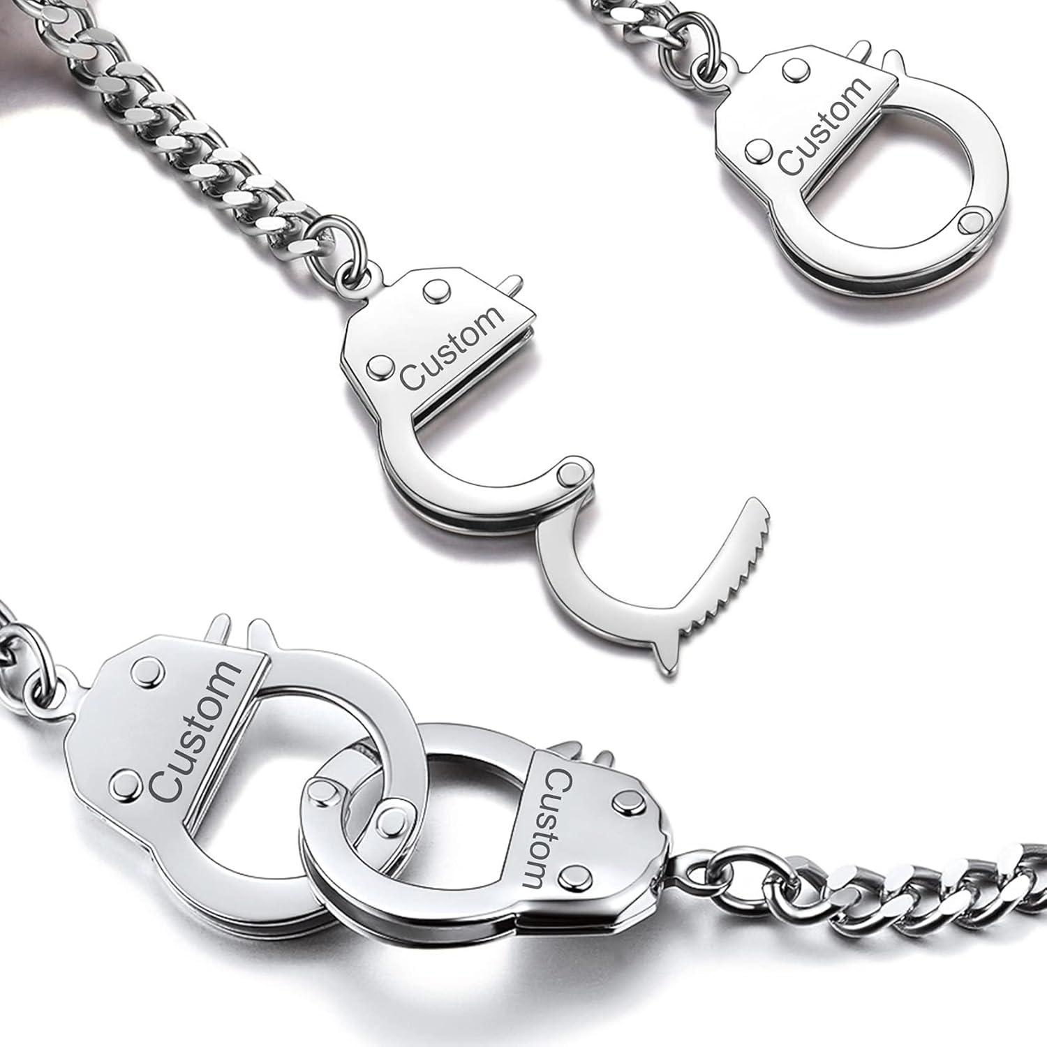 ChainsHouse Handcuff Link Bracelet for Men Women, 18K Gold/Black Metal/Stainless Steel Biker Curb Chain Friendship Best Friends Statement Bangles Bracelets, Send Gift Box(D: Stainless-Custom)