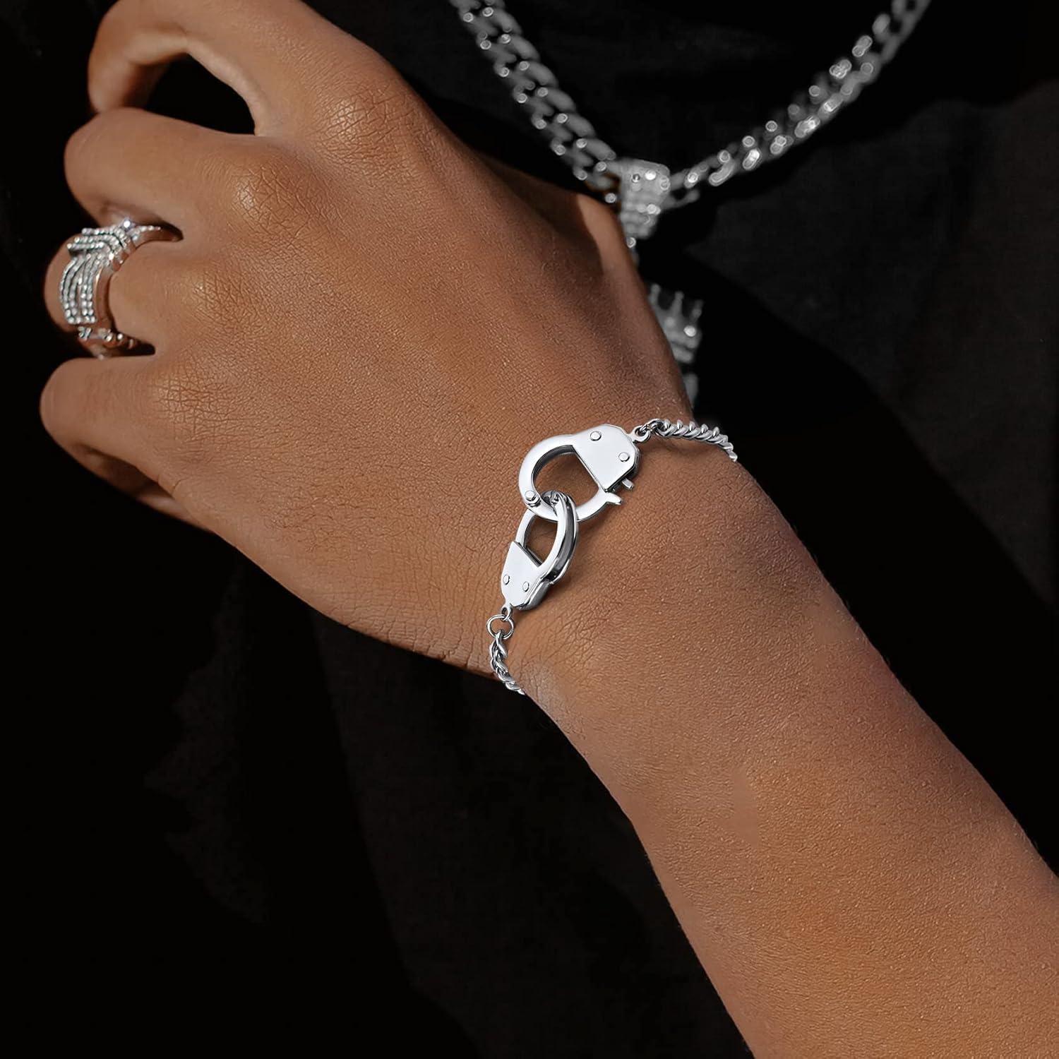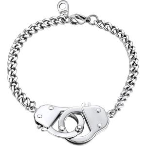 ChainsHouse Handcuff Link Bracelet for Men Women, 18K Gold/Black Metal/Stainless Steel Biker Curb Chain Friendship Best Friends Statement Bangles Bracelets, Send Gift Box(A: Stainless)