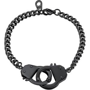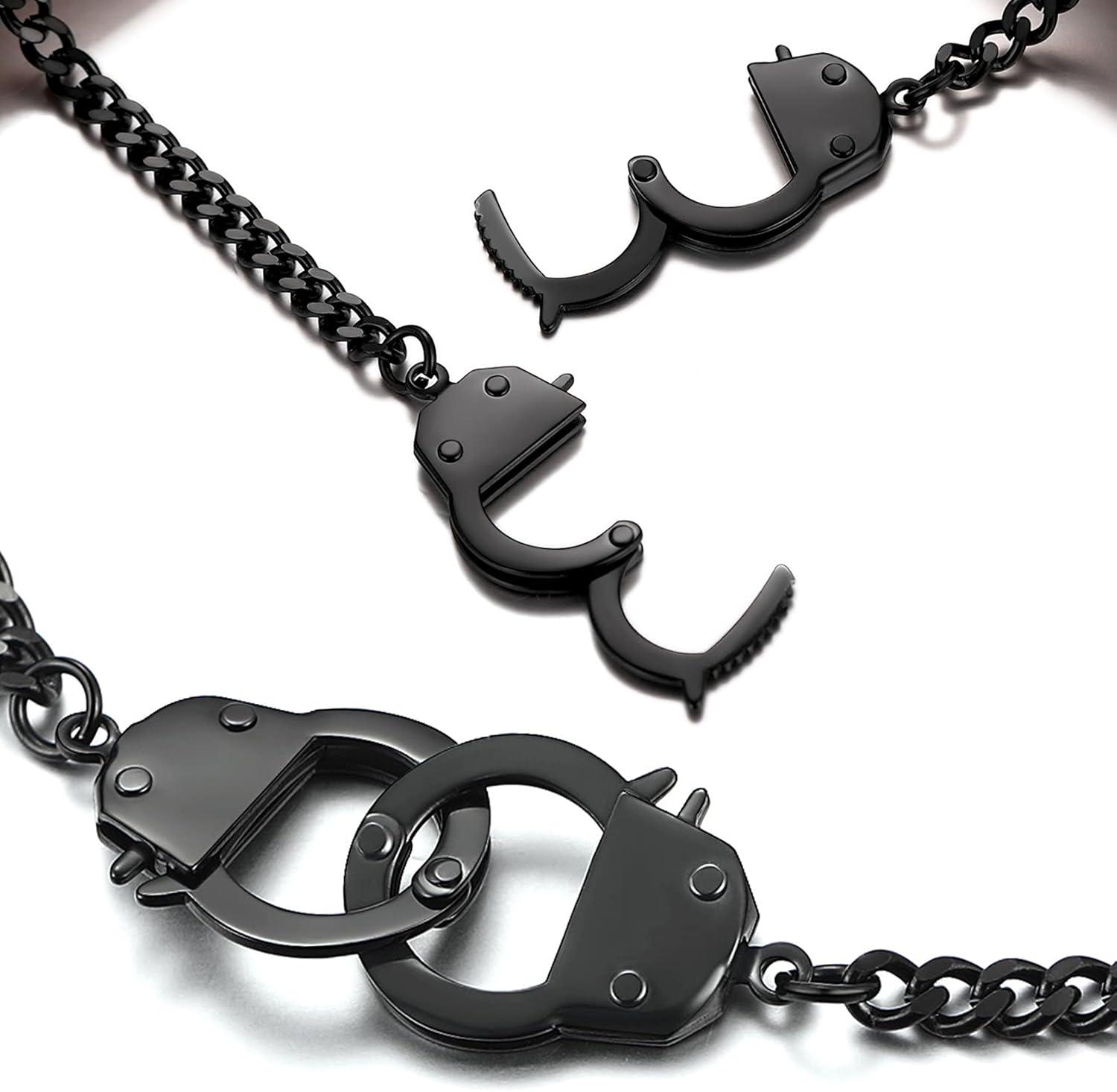 ChainsHouse Handcuff Link Bracelet for Men Women, 18K Gold/Black Metal/Stainless Steel Biker Curb Chain Friendship Best Friends Statement Bangles Bracelets, Send Gift Box(B: Black)