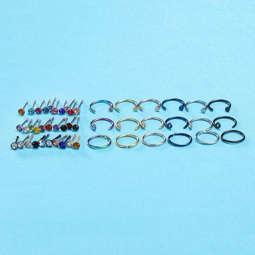 48Pcs Nose Rings Surgical Steel Nose Rings for Women Mix Color Nose Ring Hoops Stud Screw Nose Piercing Jewelry 20G