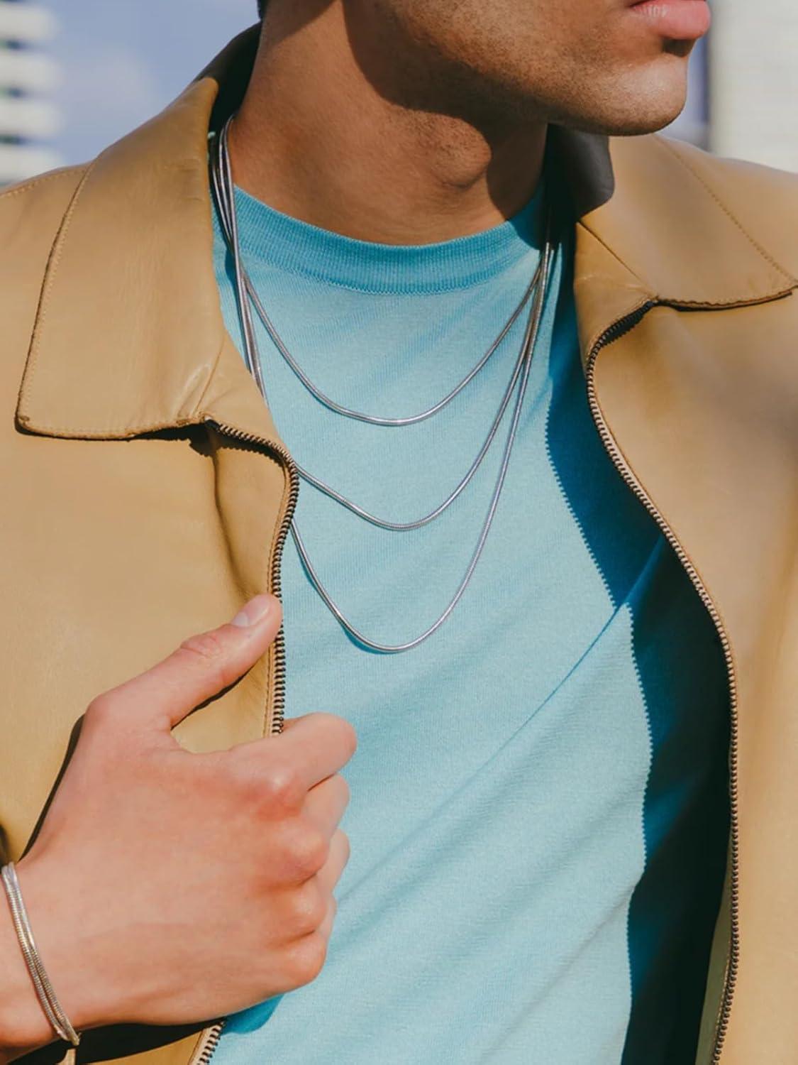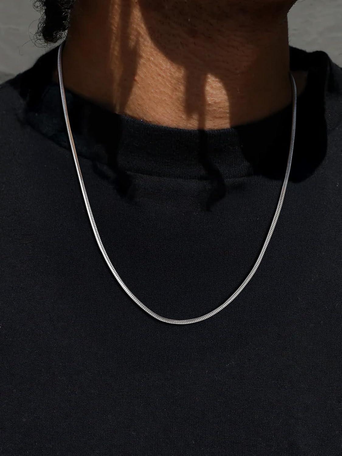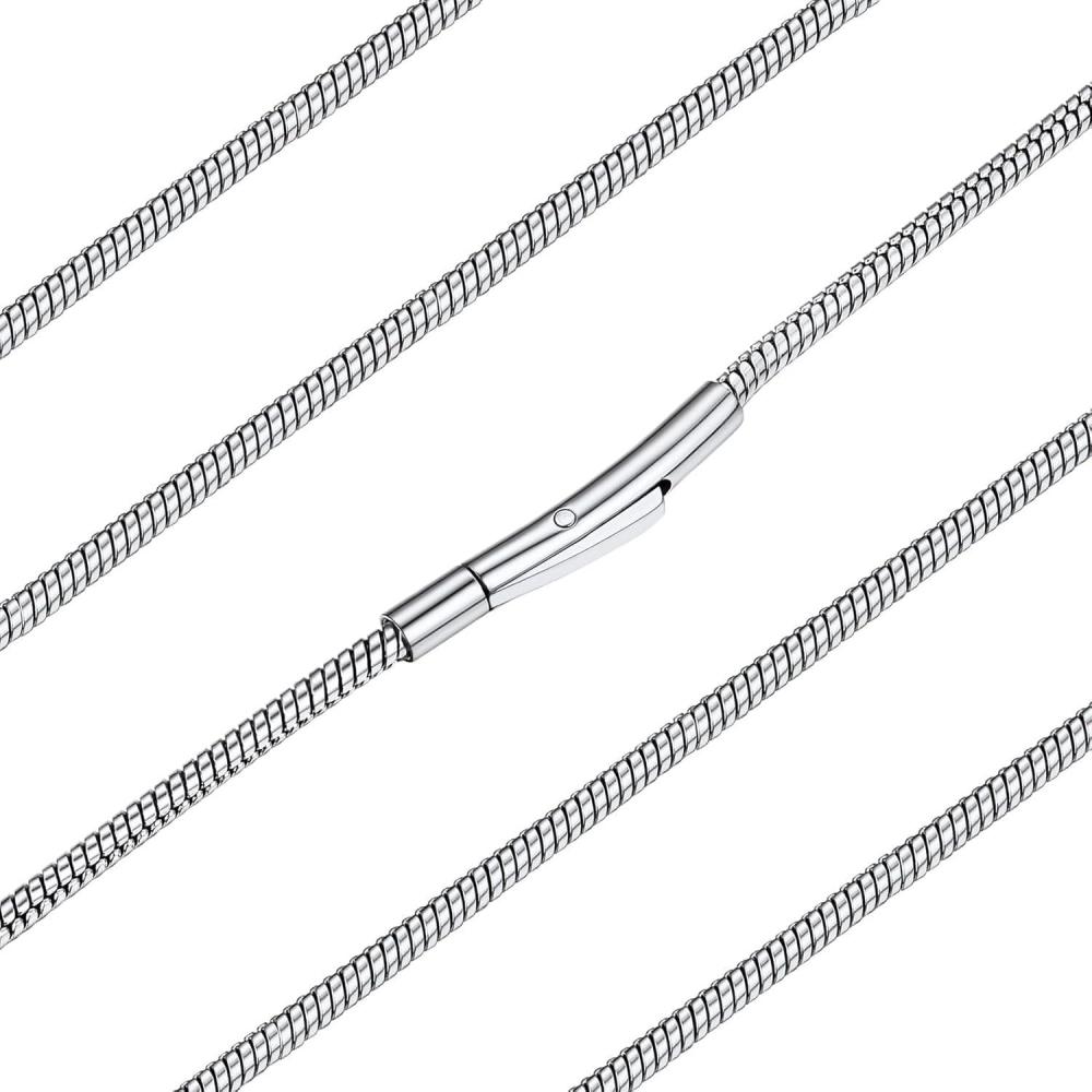 ChainsHouse 2MM Snake Chain Necklace for Men, 14K Gold/Black/Stainless Steel Simple Chains for Pendants or Solo Wear, Hypoallergenic Mens Jewelry Gift for Father, 16″-30″ Length(A: Silver)