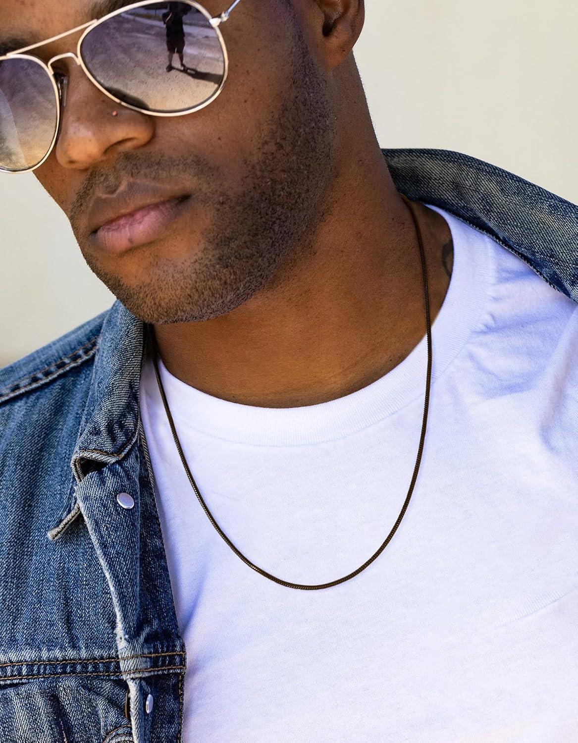 ChainsHouse 2MM Snake Chain Necklace for Men, 14K Gold/Black/Stainless Steel Simple Chains for Pendants or Solo Wear, Hypoallergenic Mens Jewelry Gift for Father, 16″-30″ Length(C: Black)