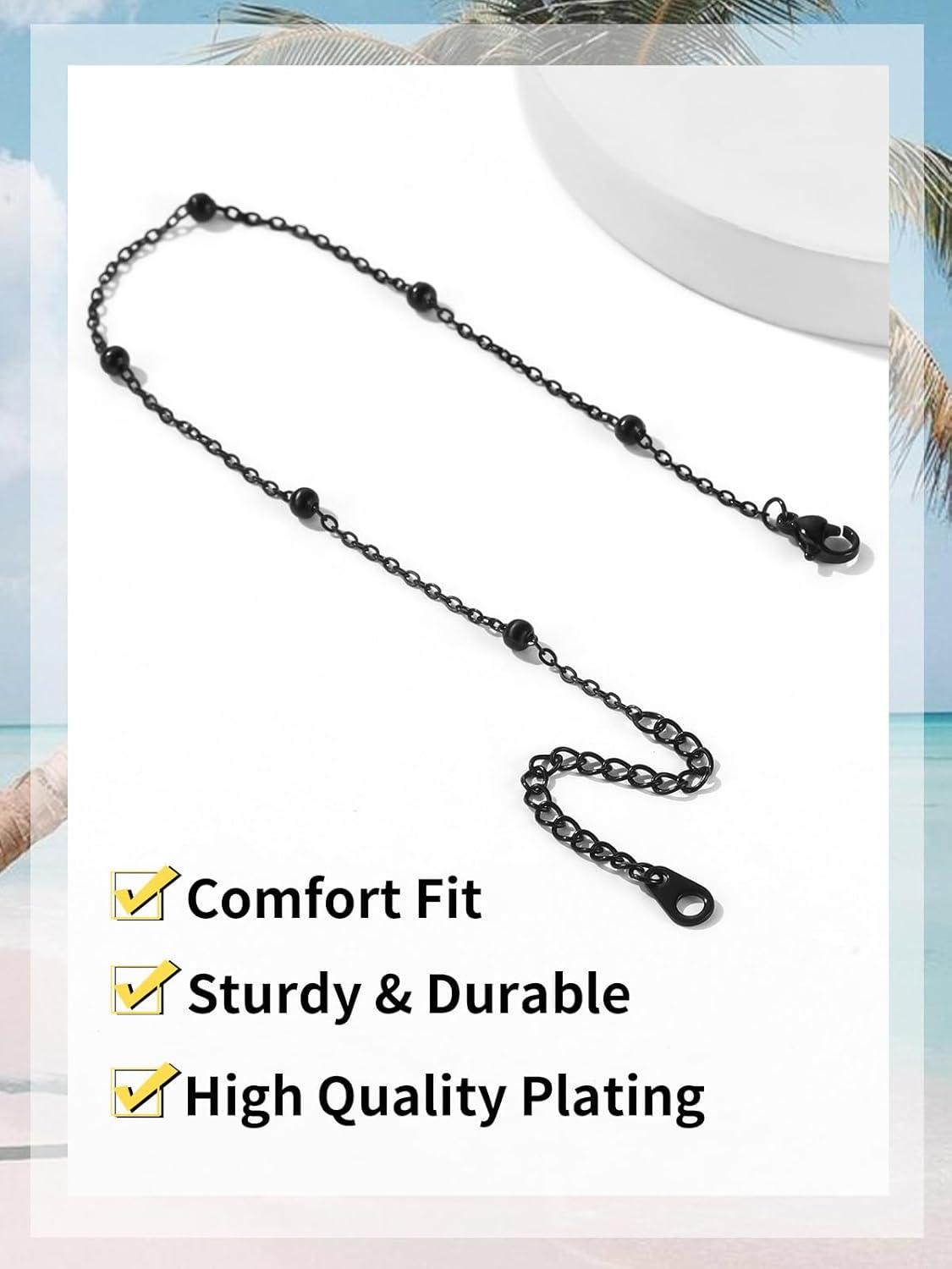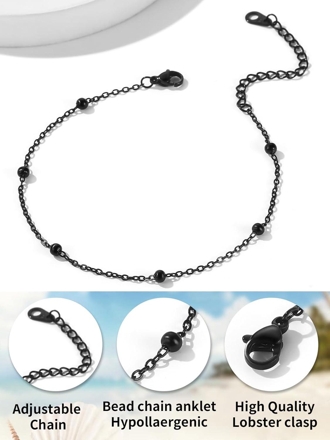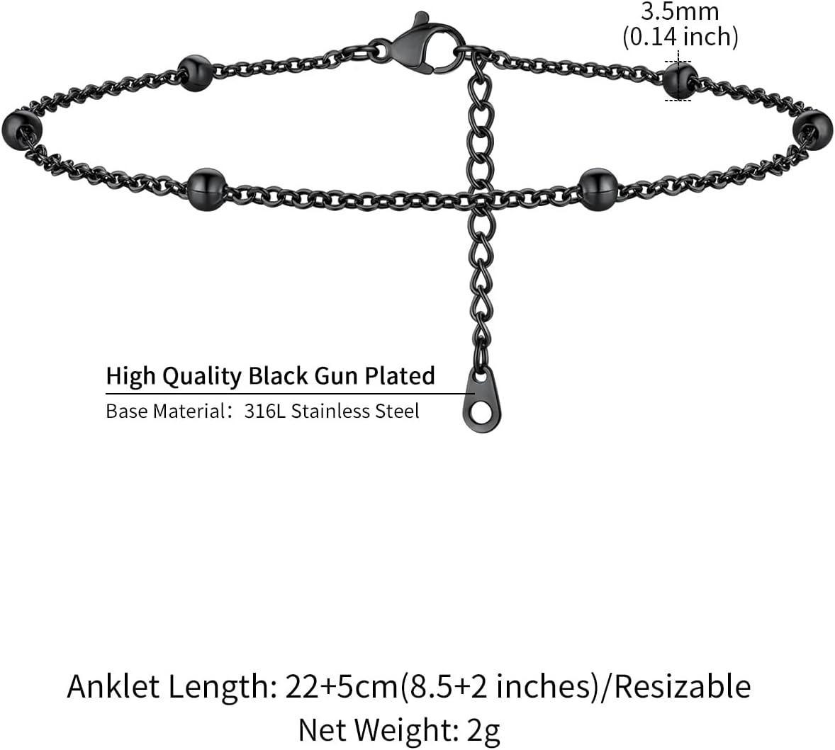 ChainsHouse Ankle Bracelets for Women, Stainless Steel Beaded Chain Ankle Bracelet, Womens Heart Anklets for Summer Beach Jewelry Gifts(K: bead-3.5mm-black)