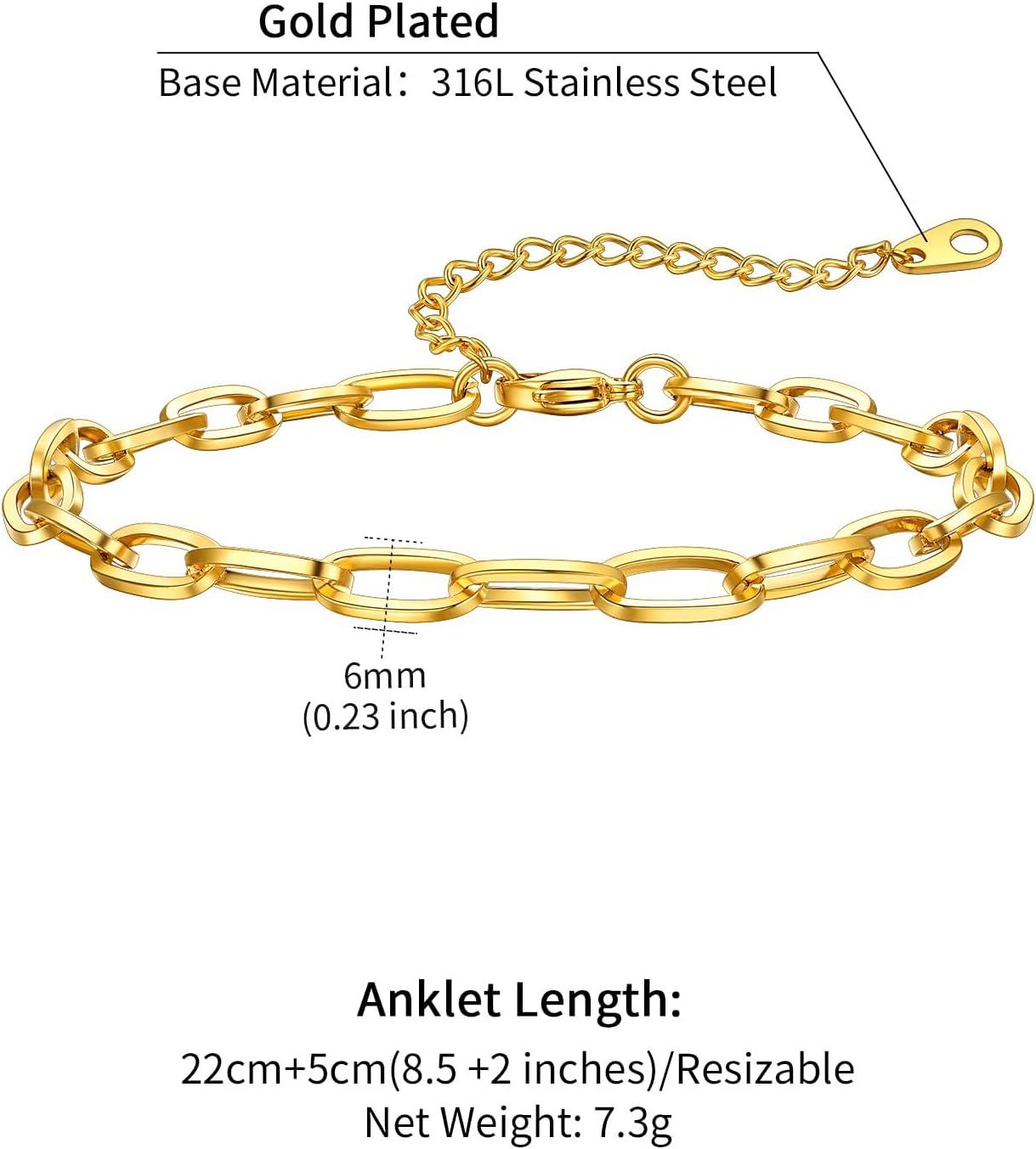 ChainsHouse Ankle Bracelets for Women, Stainless Steel Chain Anklets Waterproof, Women Summer Beach Jewelry Gift, Come with Box(01. 1Pcs-(6mm)-Paperclip-14K Gold)