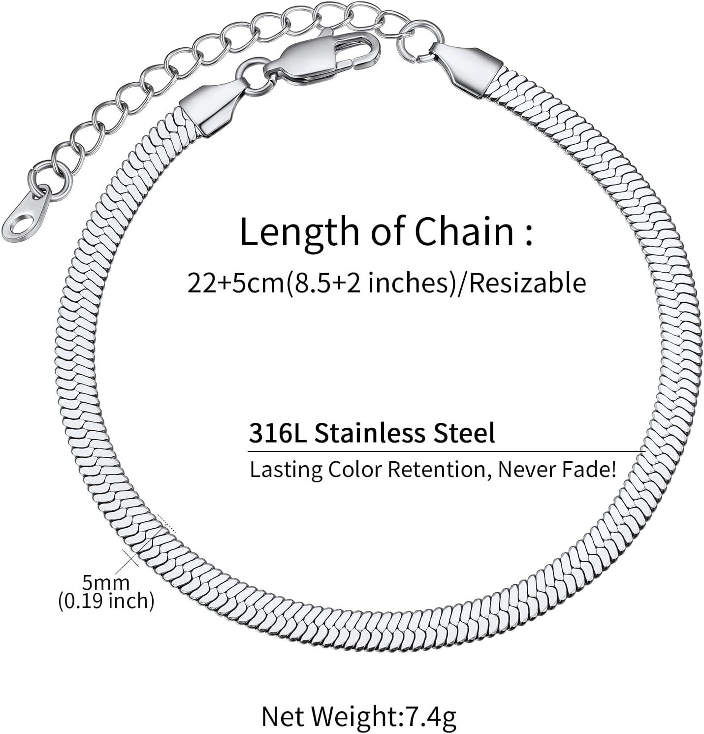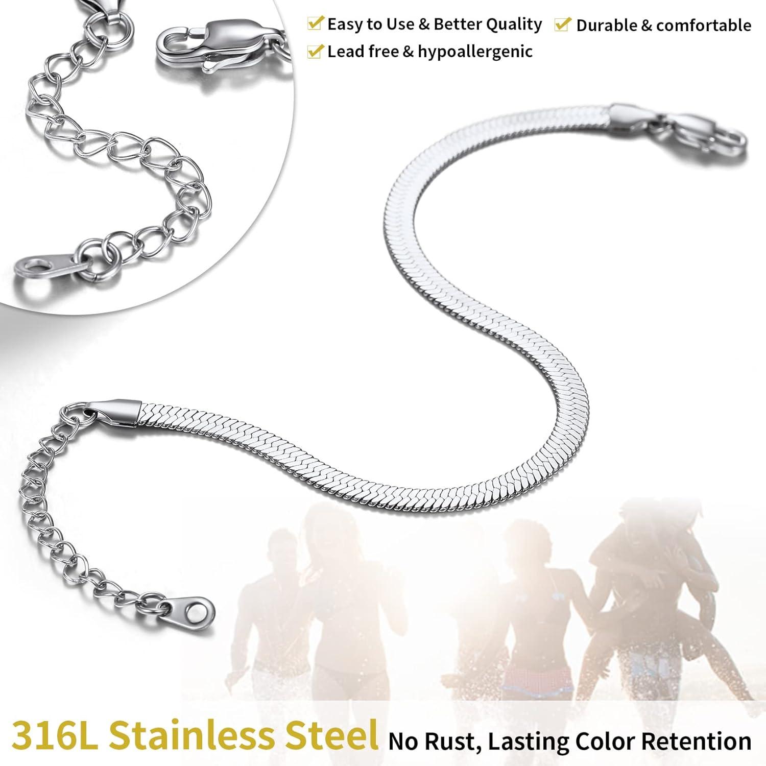 ChainsHouse Ankle Bracelets for Women, Stainless Steel Chain Anklets Waterproof, Women Summer Beach Jewelry Gift, Come with Box(10. 5mm-Herringbone-Steel)