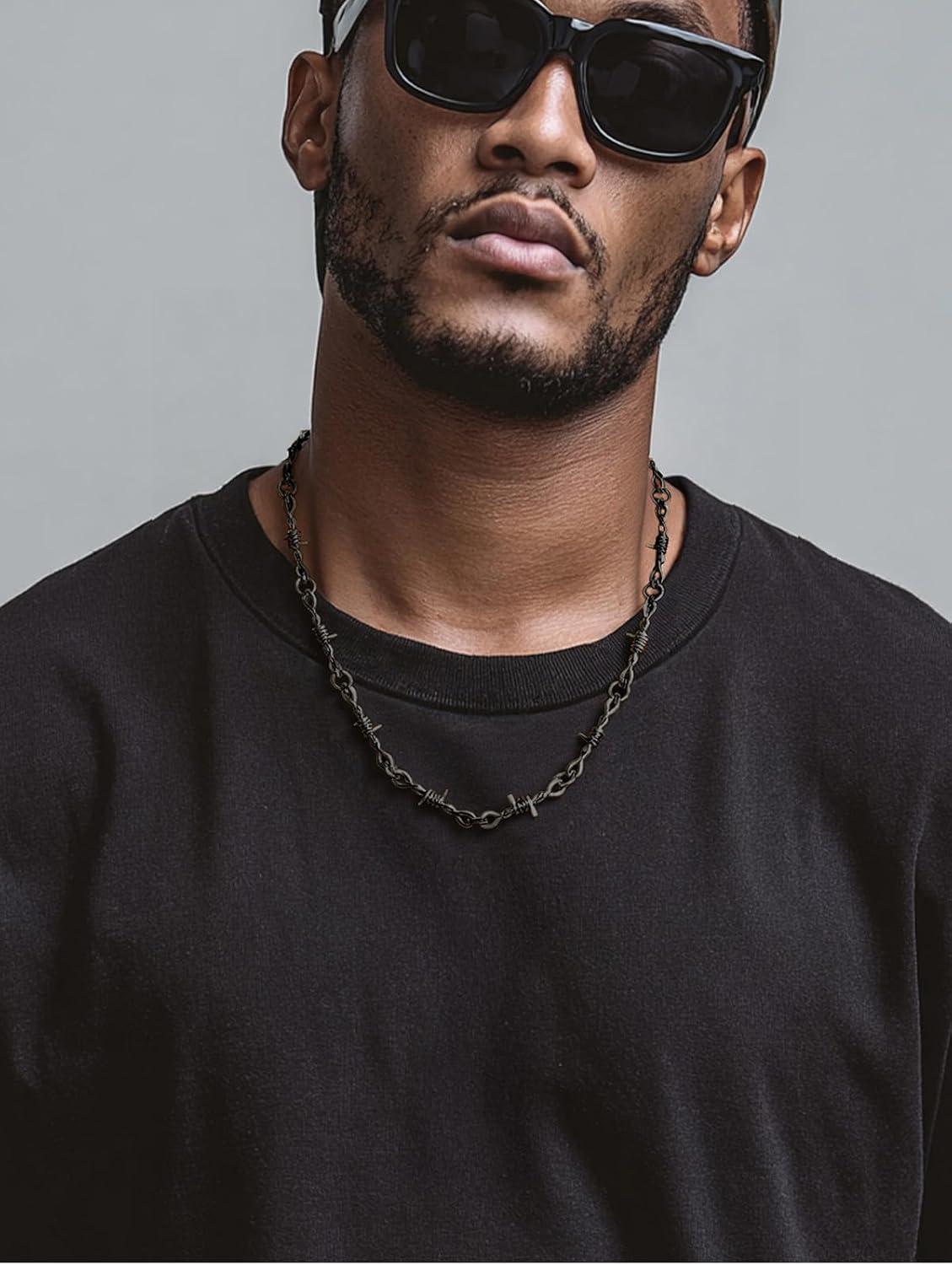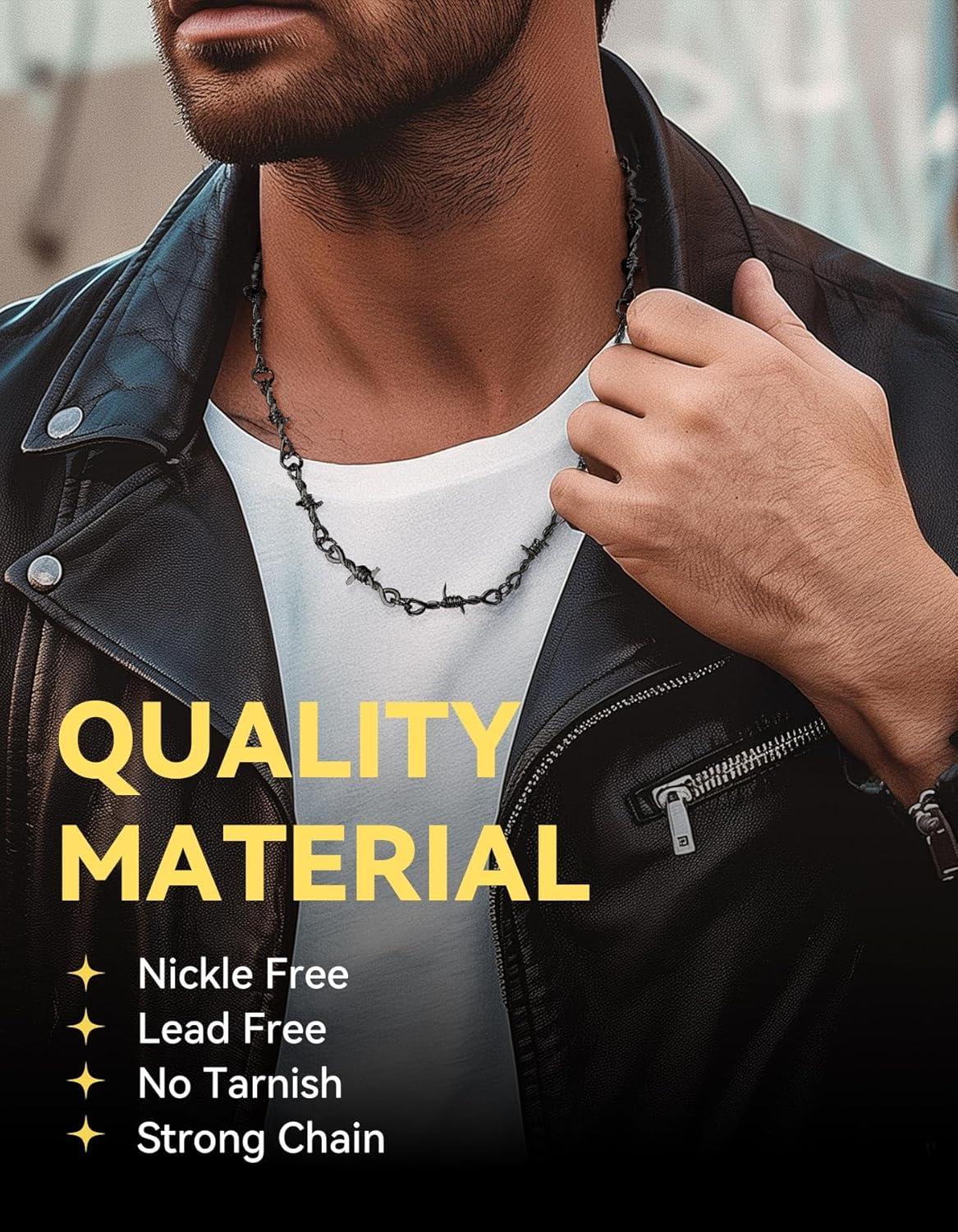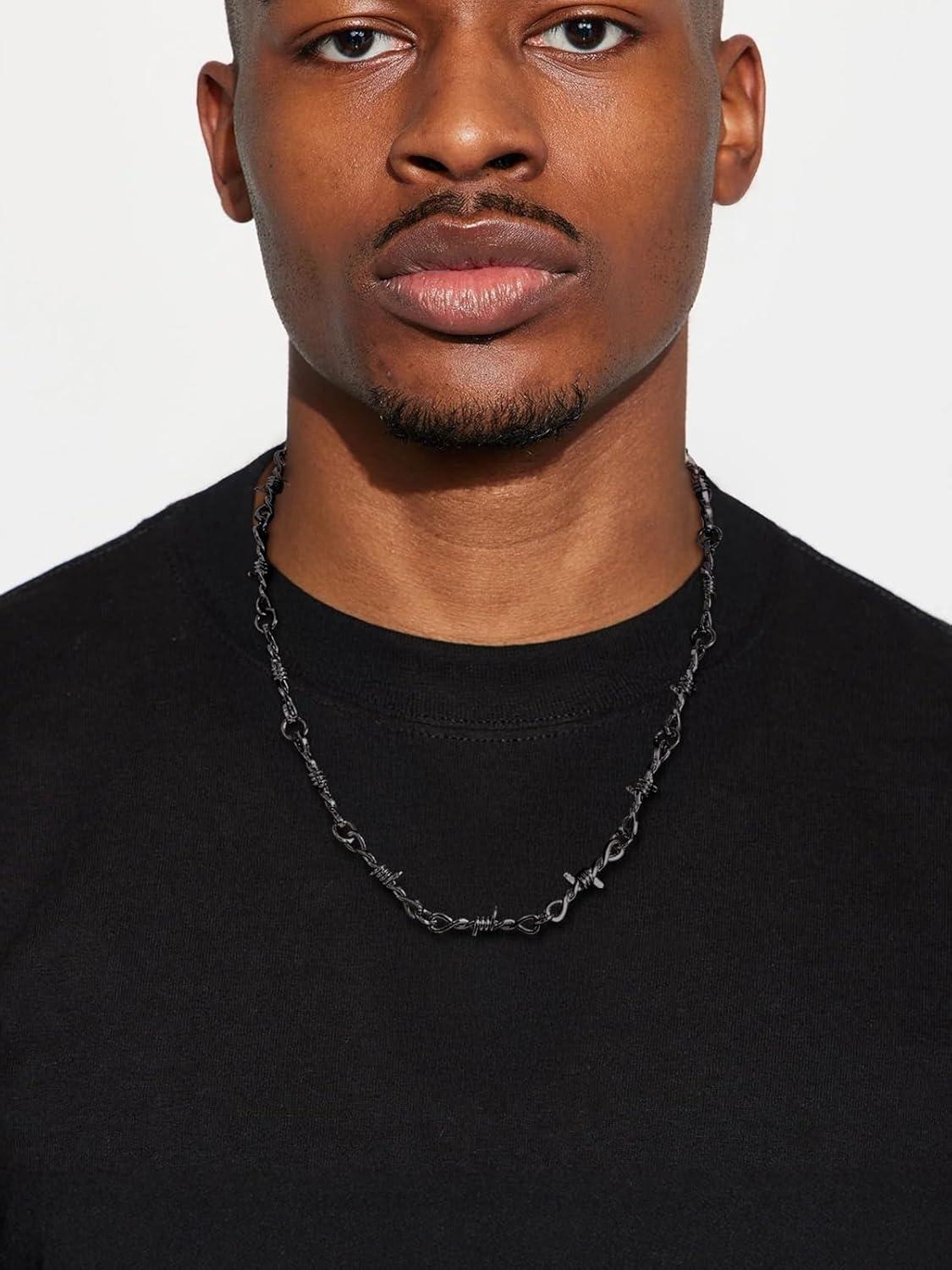 ChainsHouse Barbed Wire Necklace Punk Thorns Chain Necklace for Men Women, 5/6/7/9/12MM Wide Stainless Steel/Black Metal/Gold Plated Hiphop Rock Jewelry, 18-22 Inches(b.6mm-Black-Barbed Wire Chain)