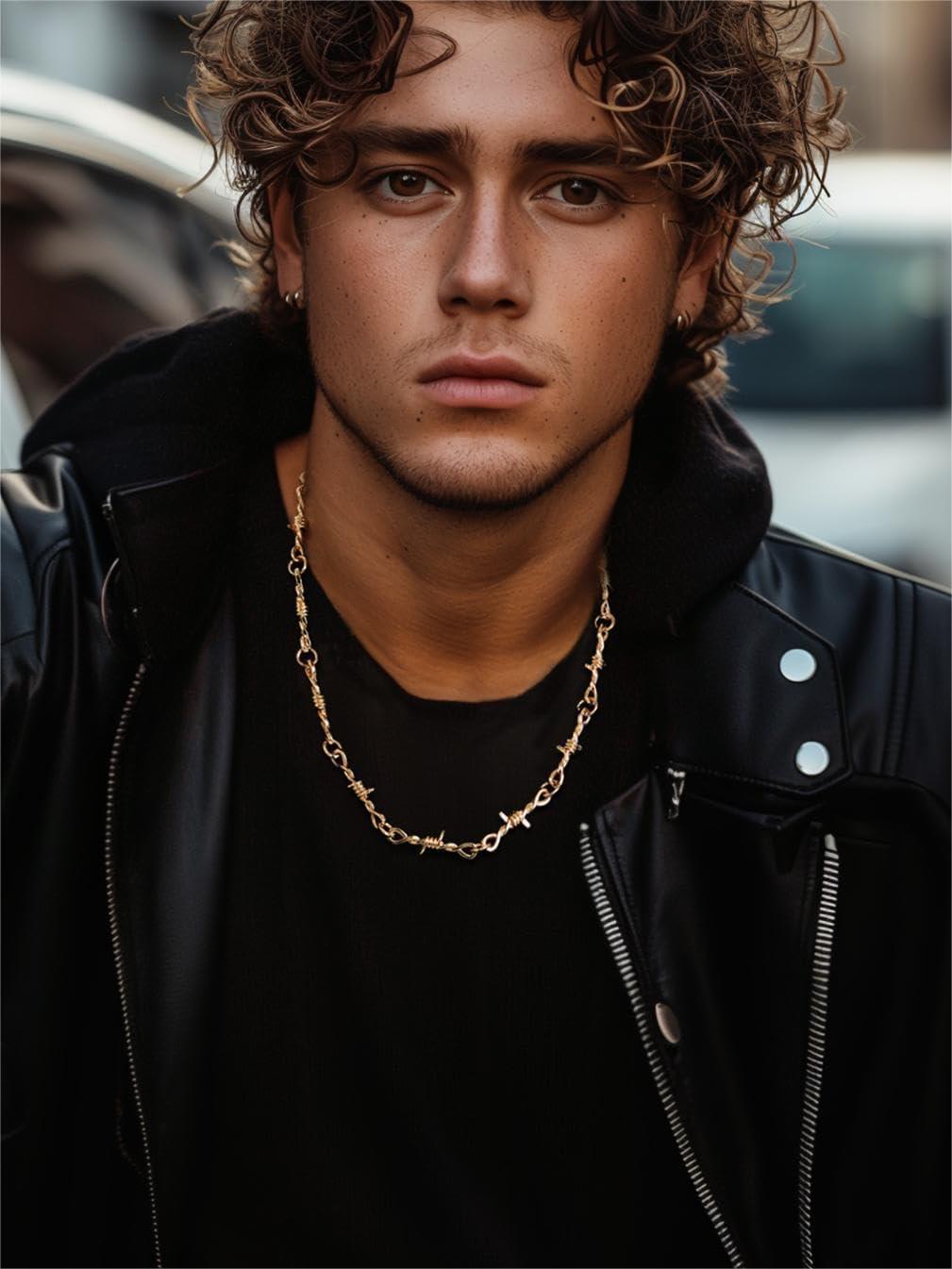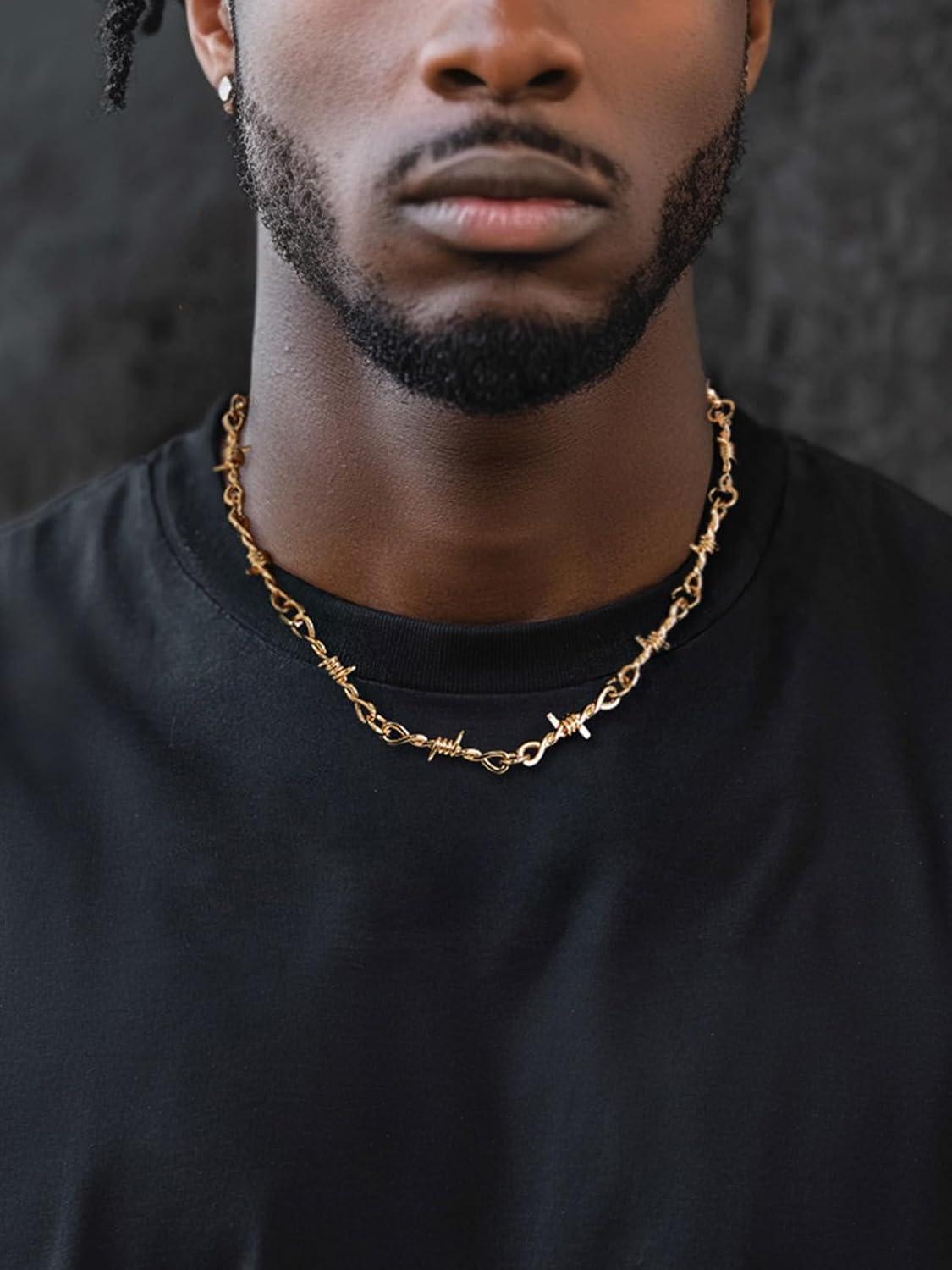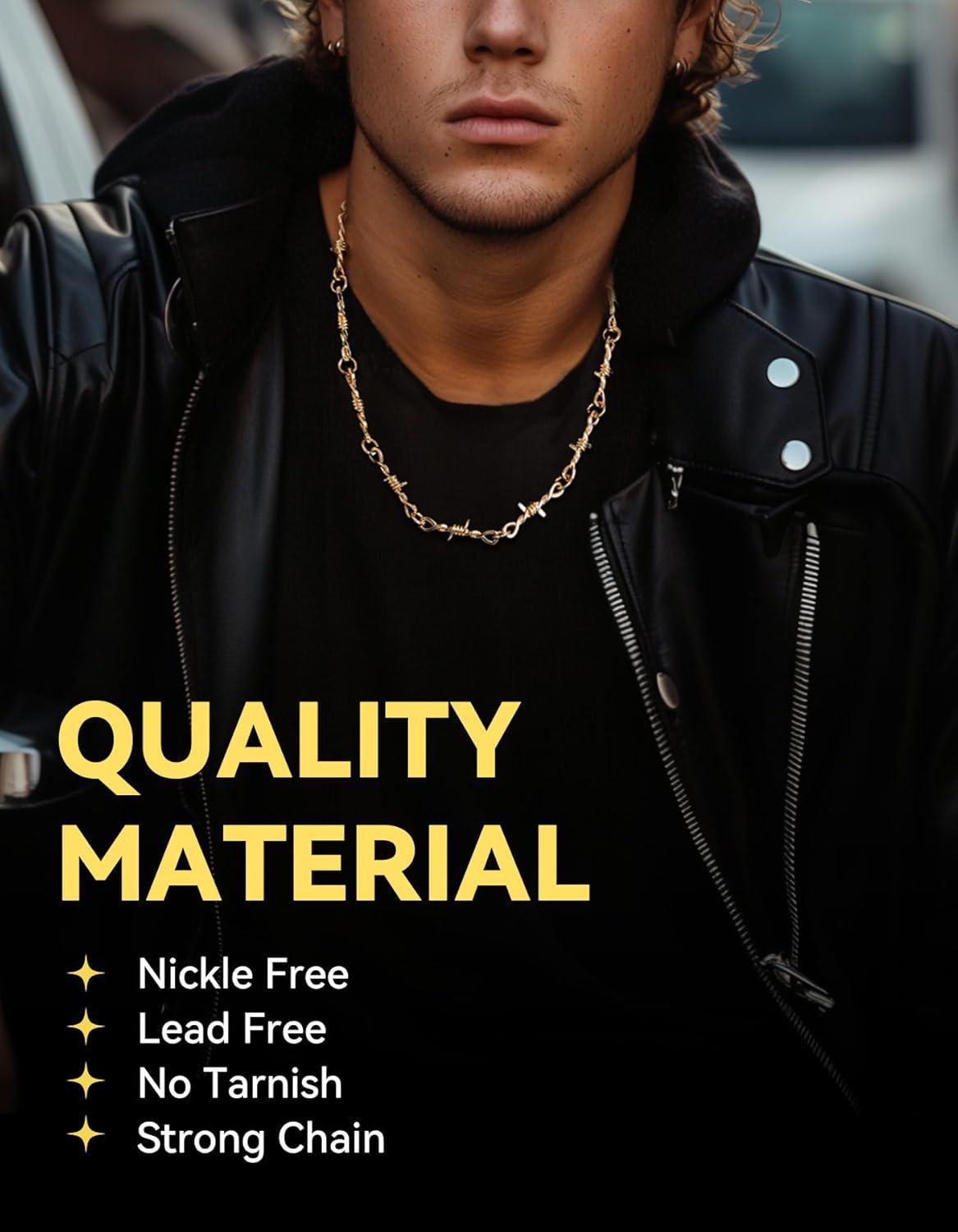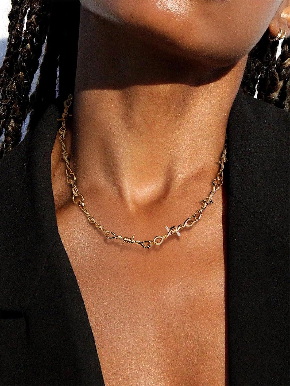 ChainsHouse Barbed Wire Necklace Punk Thorns Chain Necklace for Men Women, 5/6/7/9/12MM Wide Stainless Steel/Black Metal/Gold Plated Hiphop Rock Jewelry, 18-22 Inches(c.6mm-Gold Plated-Barbed Wire Chain)