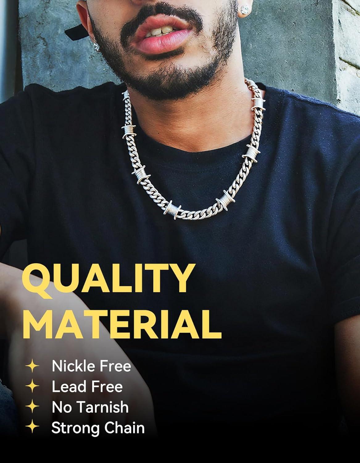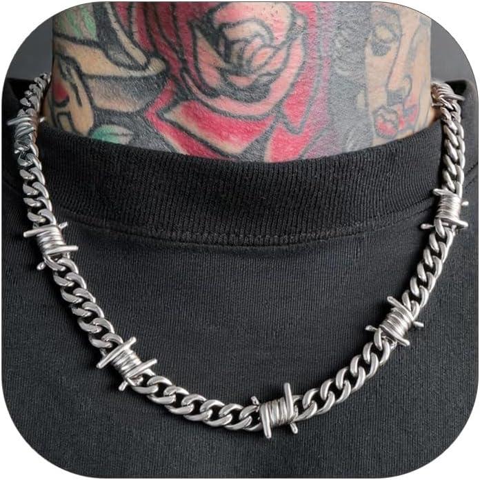 ChainsHouse Barbed Wire Necklace Punk Thorns Chain Necklace for Men Women, 5/6/7/9/12MM Wide Stainless Steel/Black Metal/Gold Plated Hiphop Rock Jewelry, 18-22 Inches(f.9mm-Steel-Thorns Chain)