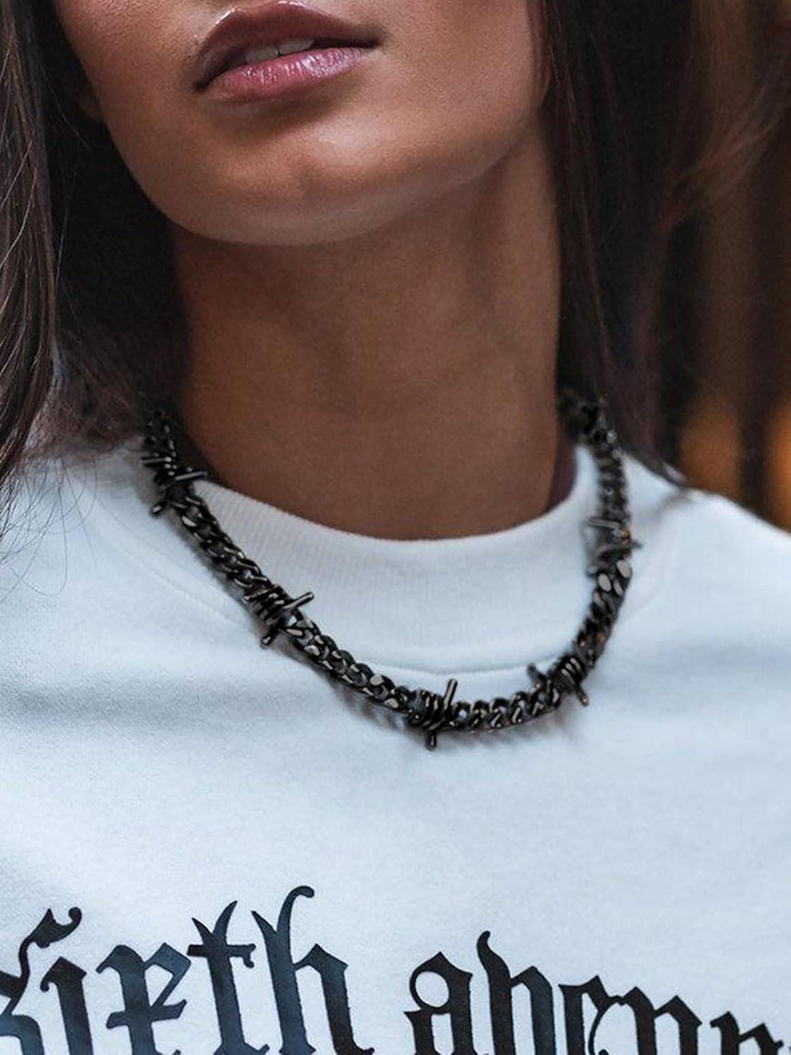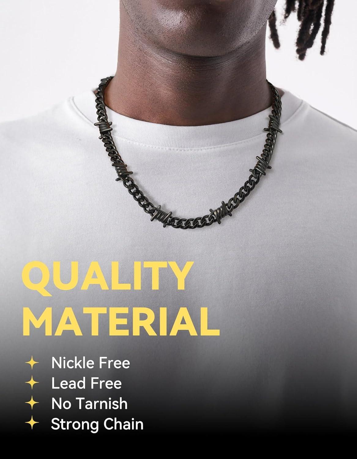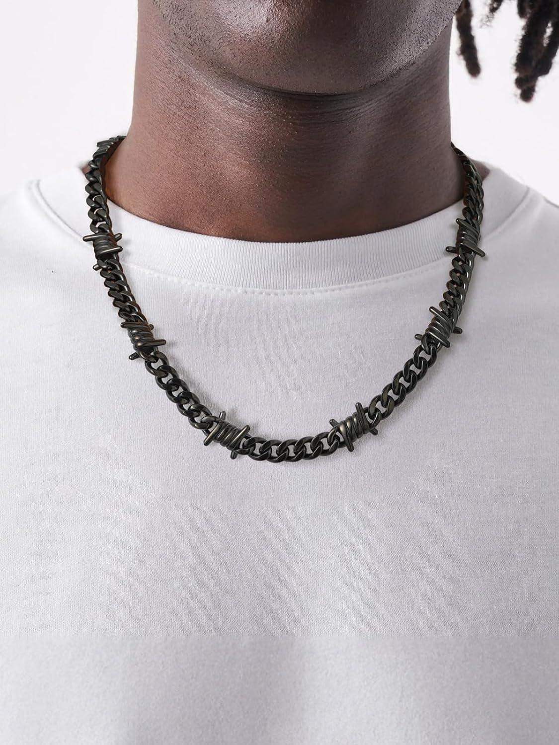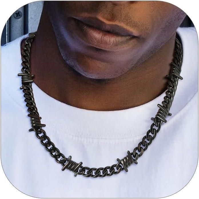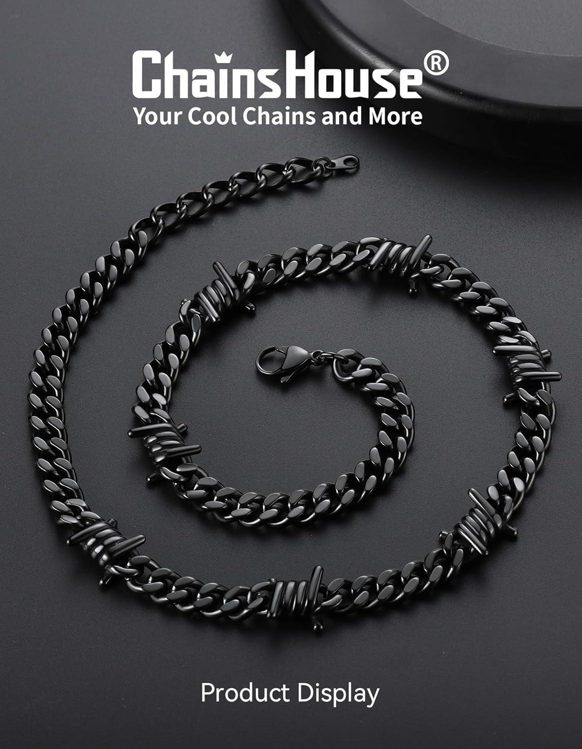 ChainsHouse Barbed Wire Necklace Punk Thorns Chain Necklace for Men Women, 5/6/7/9/12MM Wide Stainless Steel/Black Metal/Gold Plated Hiphop Rock Jewelry, 18-22 Inches(j.9mm-Black-Thorns Chain)
