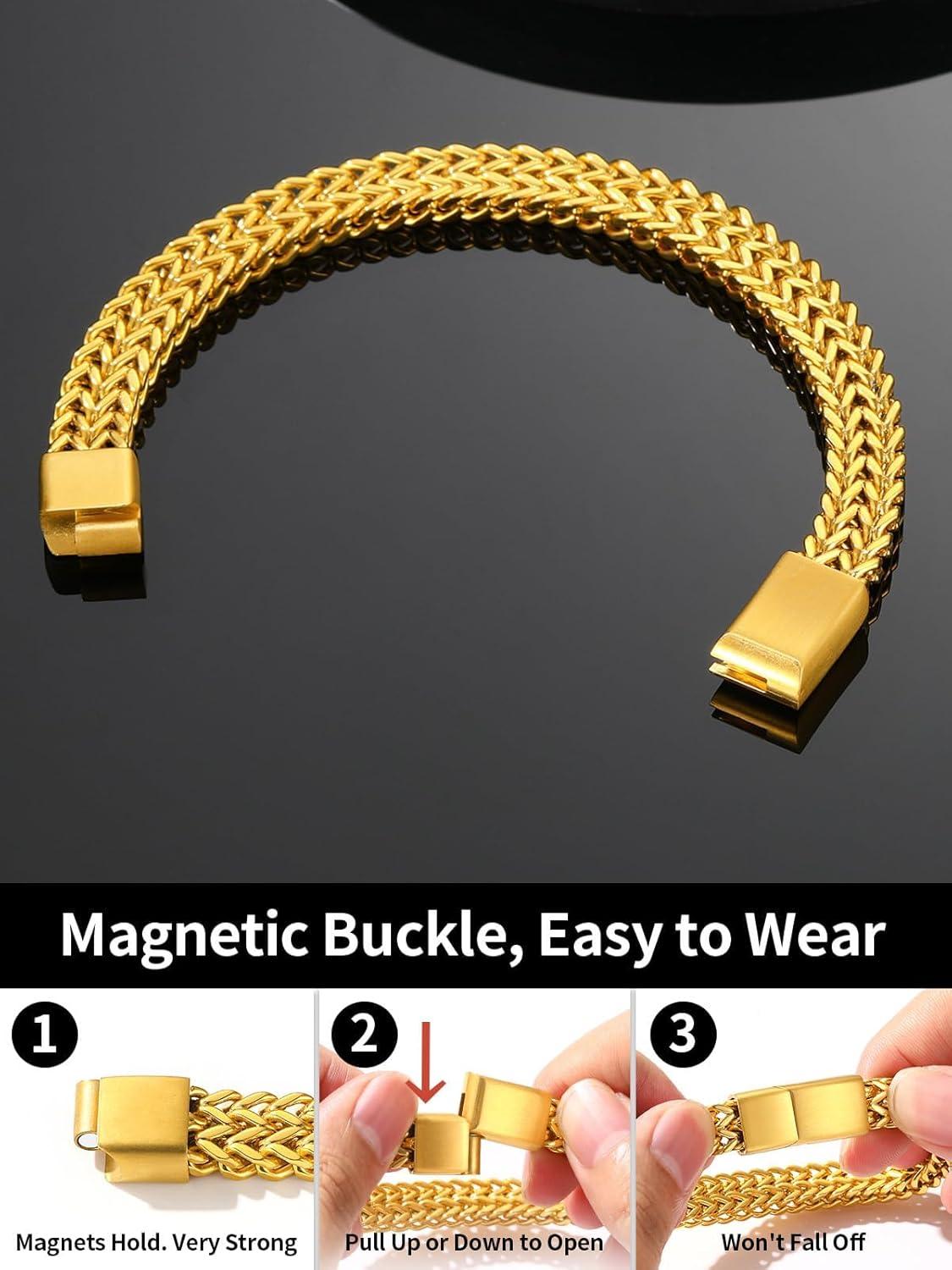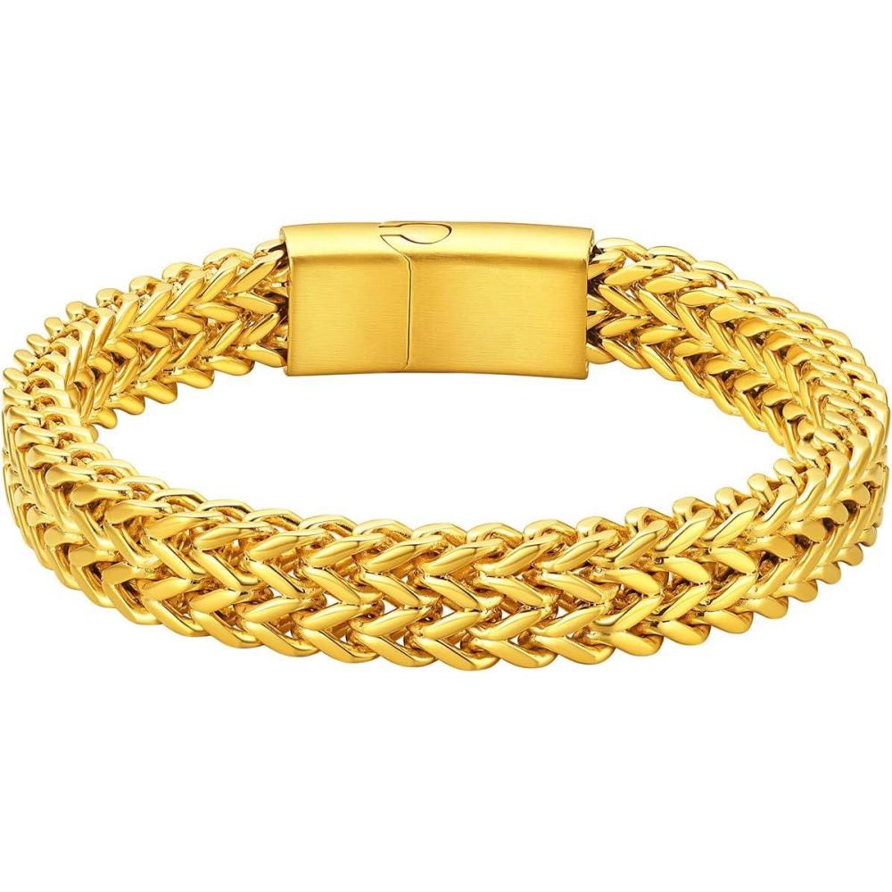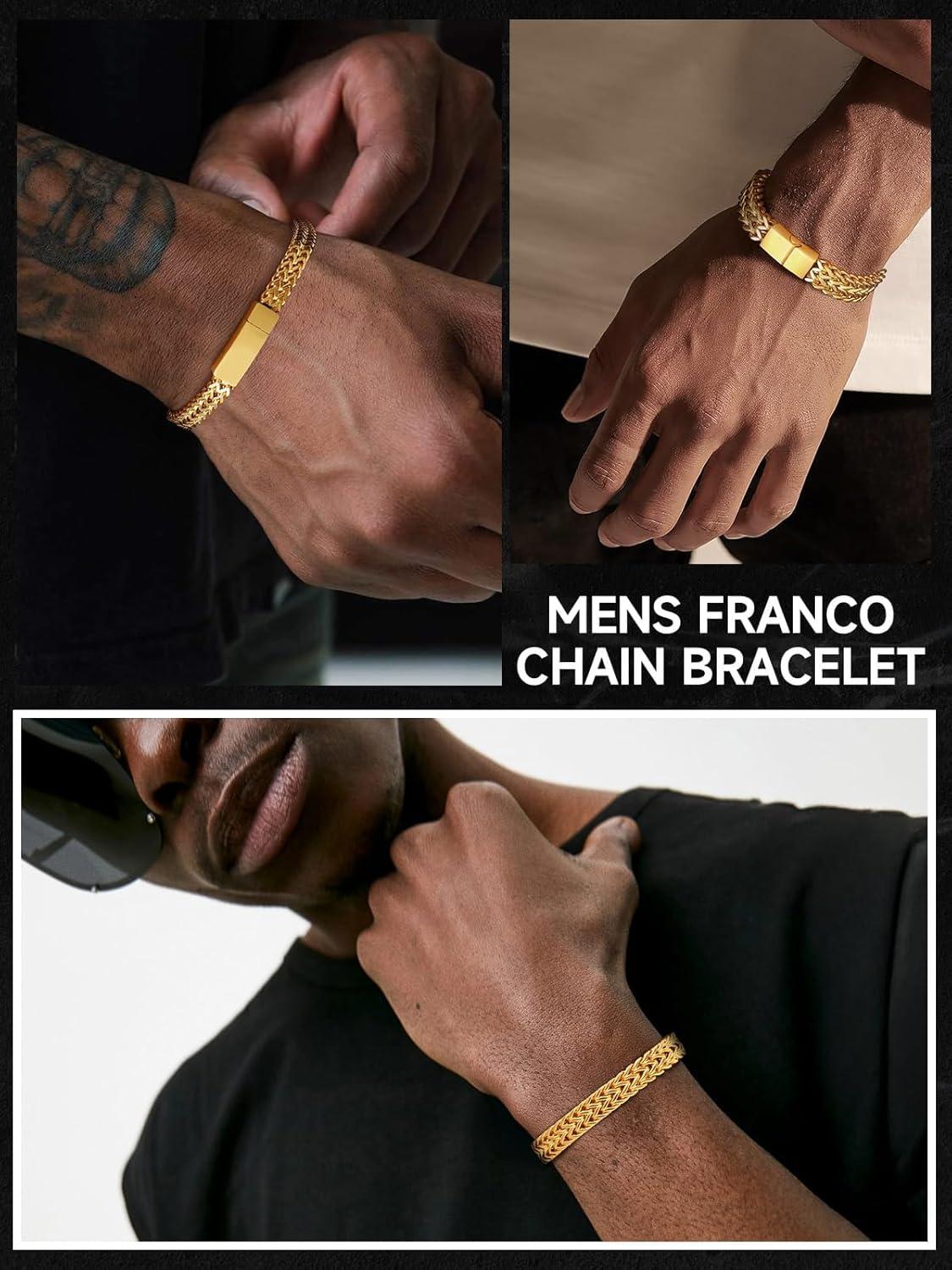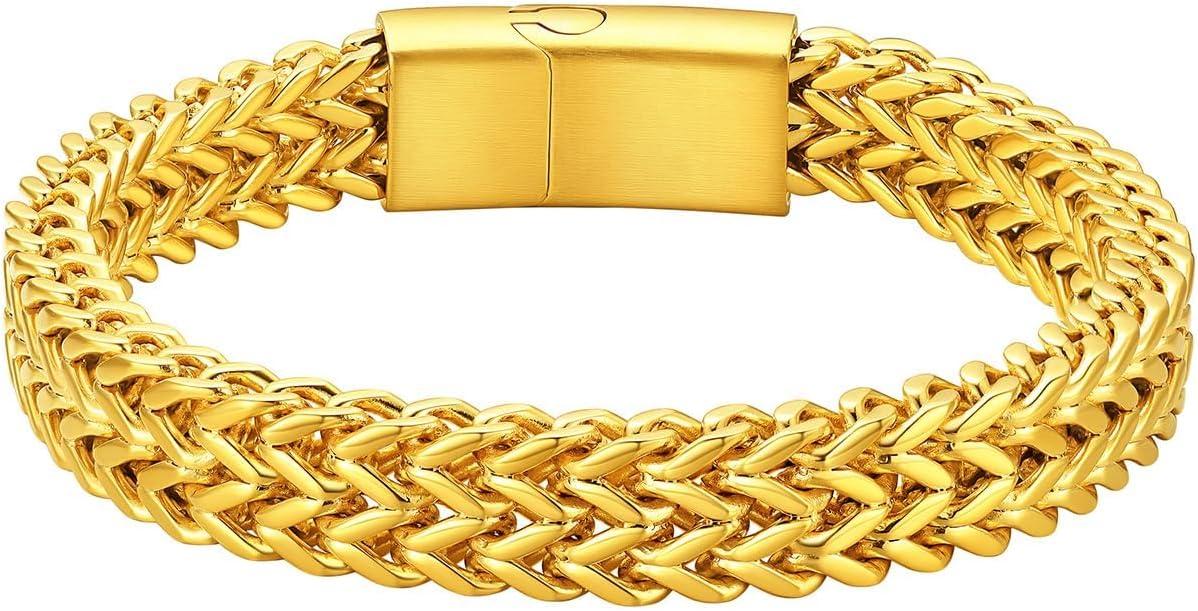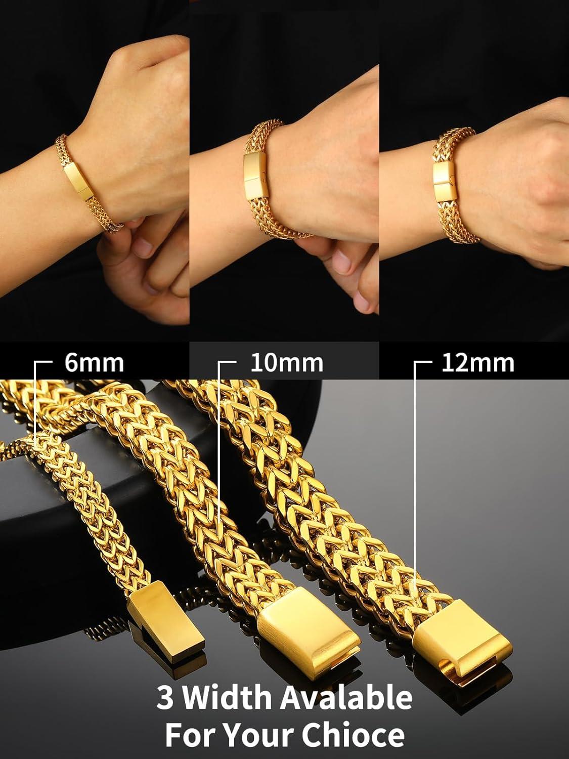 ChainsHouse Bracelet for Men Franco Curb Chain Link with Sturdy Clasp, 7.5/8.3/9 Inches Length 6/10/12MM Width Bracelet Chain Gift for Dad, Husband, Father’s Day, Birthday(H: 10mm-Gold Plated)