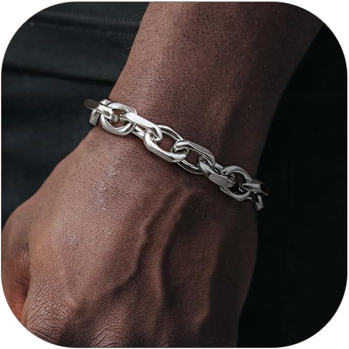 ChainsHouse Cable Chain Link Bracelet for Men Women, 7mm/9mm/12mm Width, 7.5/8.3″ Length, 316L Stainless Steel/18K Gold Tone/Black (Send Gift Box)(c 12mm stainless)