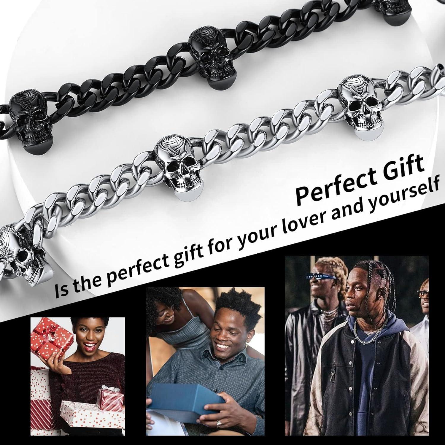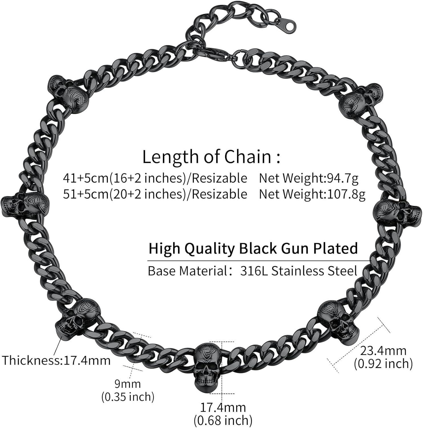 ChainsHouse Curb Chain Skull Necklace for Men, Stainless Steel/Black Gothic Skull Choker Curb Necklaces Punk Jewelry,16″-20″ inch Length(c.Skull-Black-16 inches)