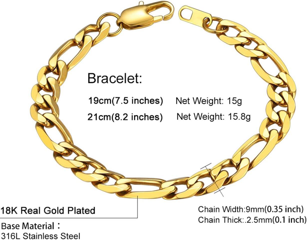 ChainsHouse Figaro Link Chain Bracelet Stainless Steel/Black/18K Gold Plated Wrist Bracelets for Men Women, 6MM-13MM, 7.5″/8.3″, Send Gift Box(a: 9mm-gold)