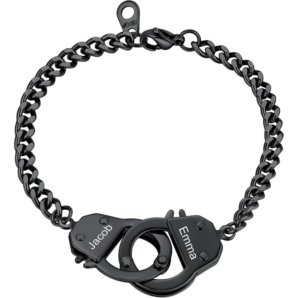 Be the first to review “ChainsHouse Handcuff Link Bracelet for Men Women, 18K Gold/Black Metal/Stainless Steel Biker Curb Chain Friendship Best Friends Statement Bangles Bracelets, Send Gift Box(E: Black-Custom)”