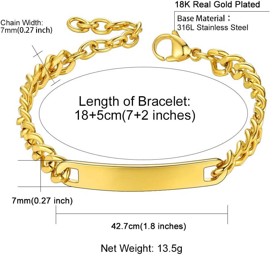 ChainsHouse Personalized ID Bracelet for Men Women Stainless Steel Cuban Curb Link Chain Custom Engrave Bar Bracelet Bangle, 7mm Width, 19-21CM, Send Gift Box(C: Gold–7MM)