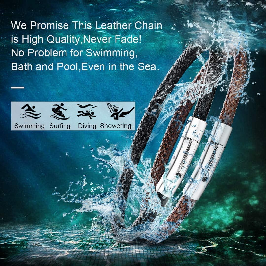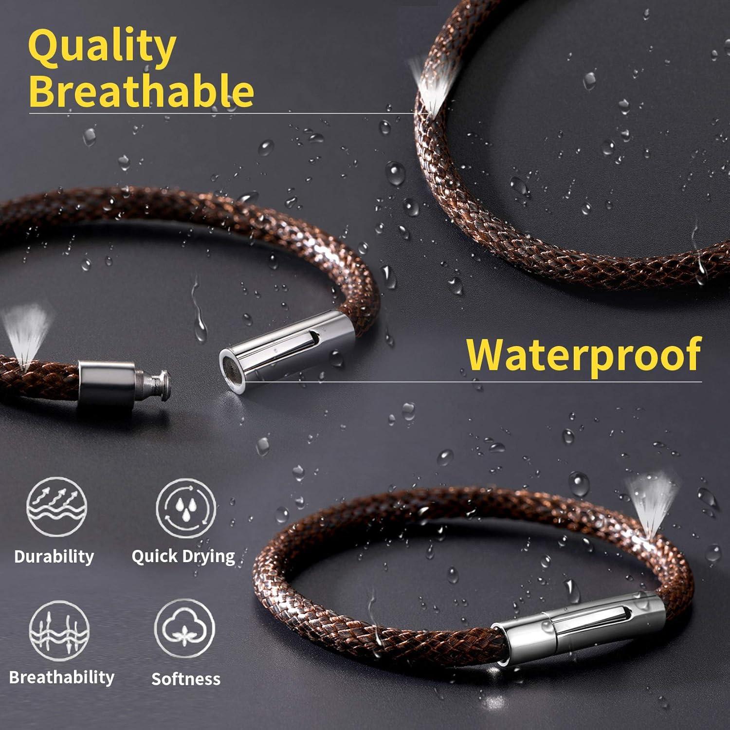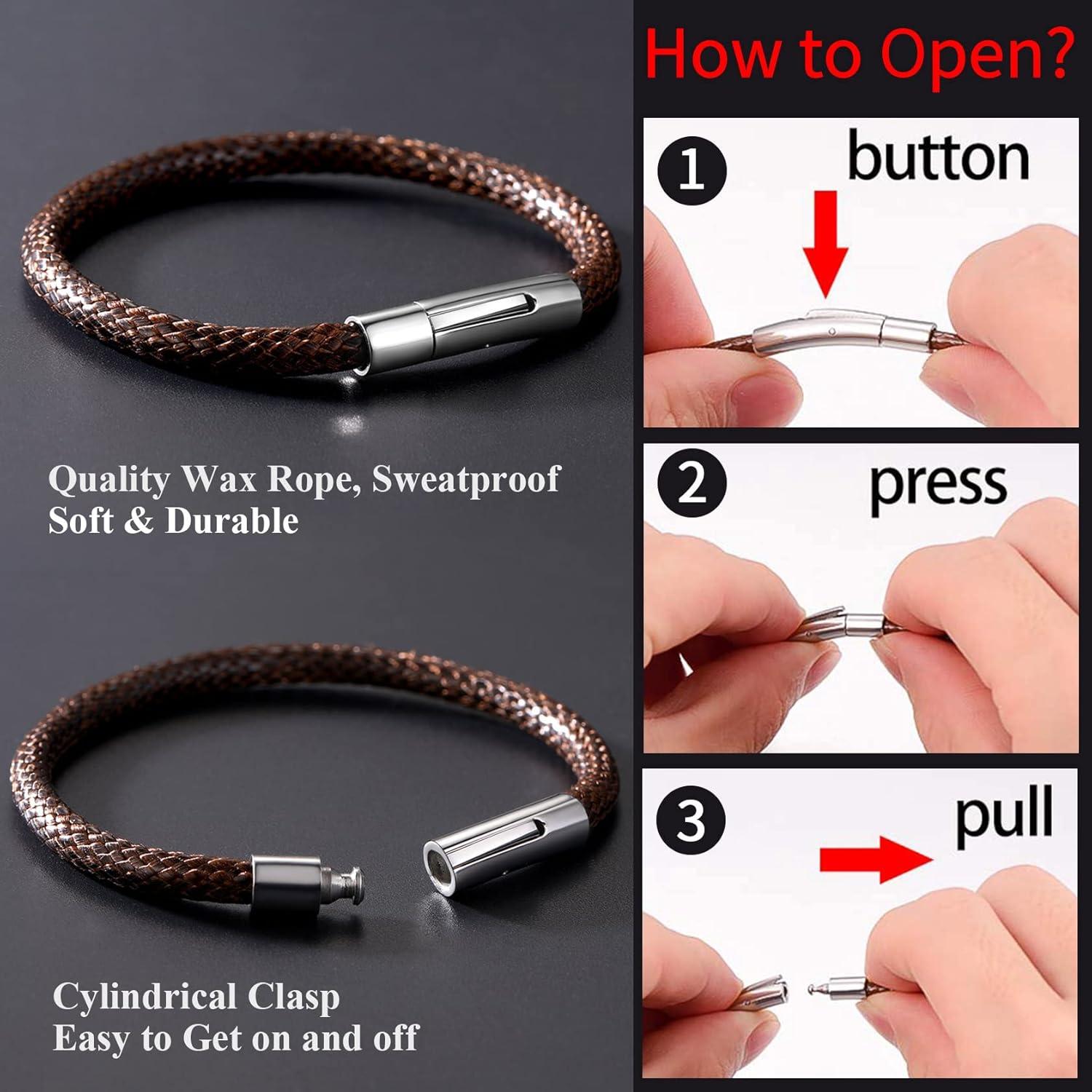 ChainsHouse Personalized Mens Leather Wrist Cuff Bracelets with Custom Beads, Waterproof Wax Rope Braided Cord Bracelet Engraved with Names for Men Women, 7-8.7 inch Length, Send Gift Box(A: Brown)