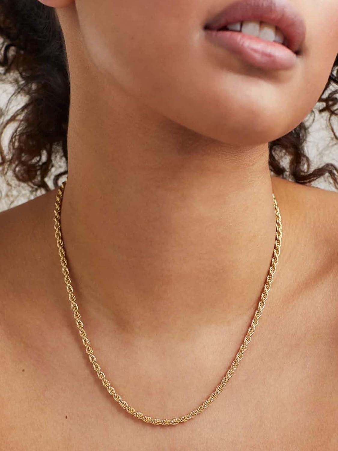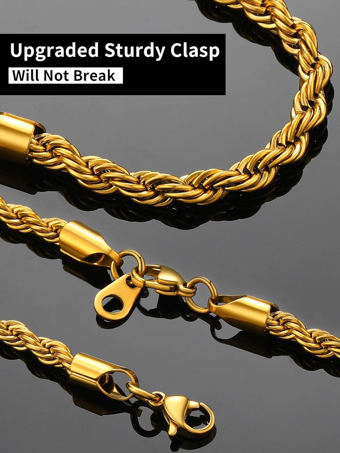ChainsHouse Rope Chain for Men Women, Stainless Steel Twisted Chain Necklace 1.5mm/2mm/3mm/3.8mm/6mm Width, Black/14K Gold Mens Rope Chains Jewelry 16″-30″, Send Gift Box(b. 3.8mm width-gold)