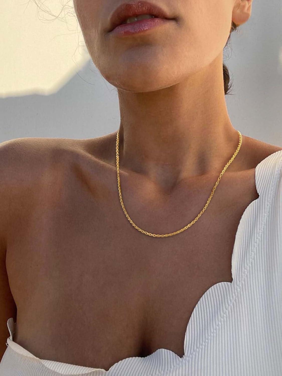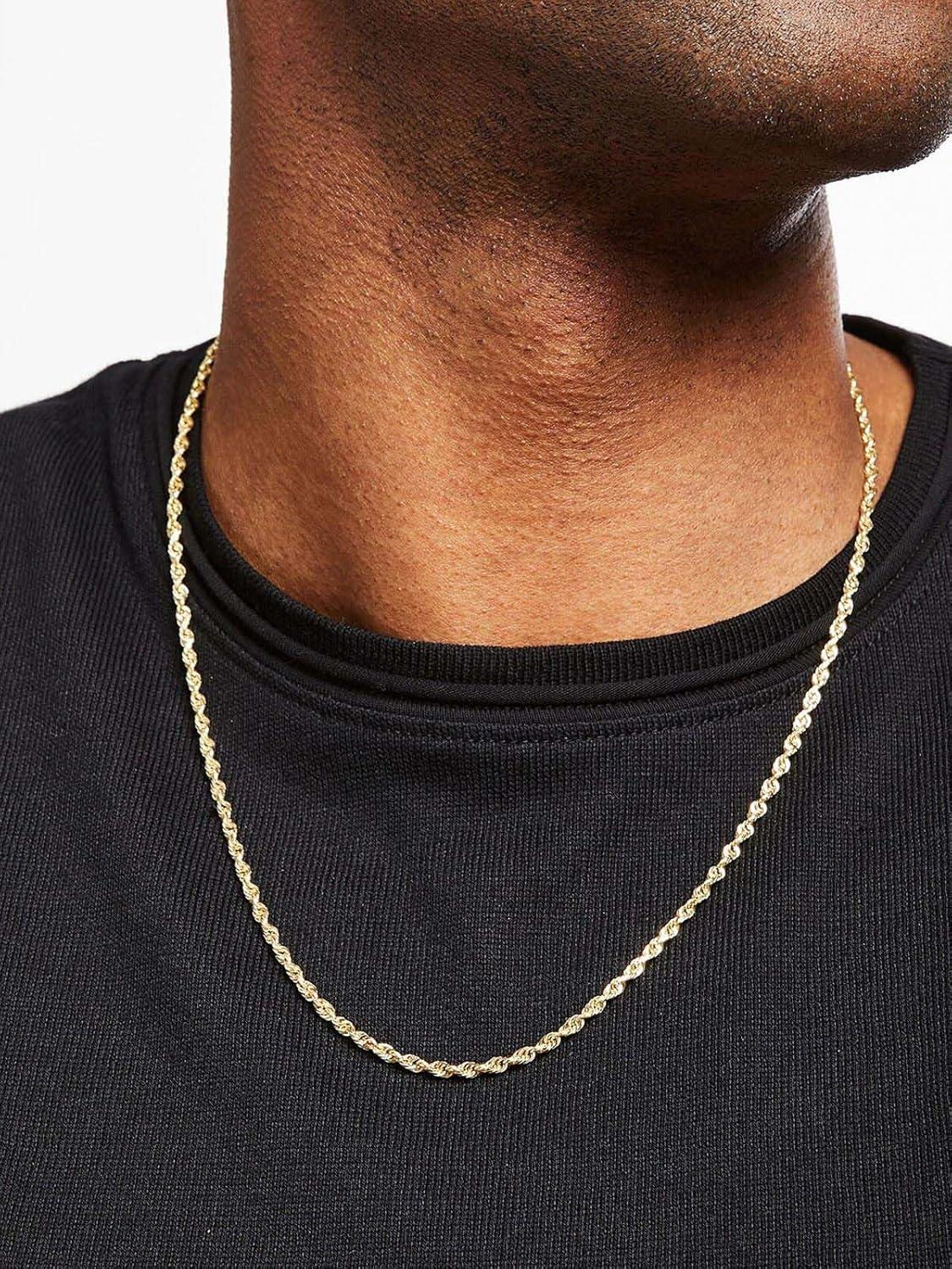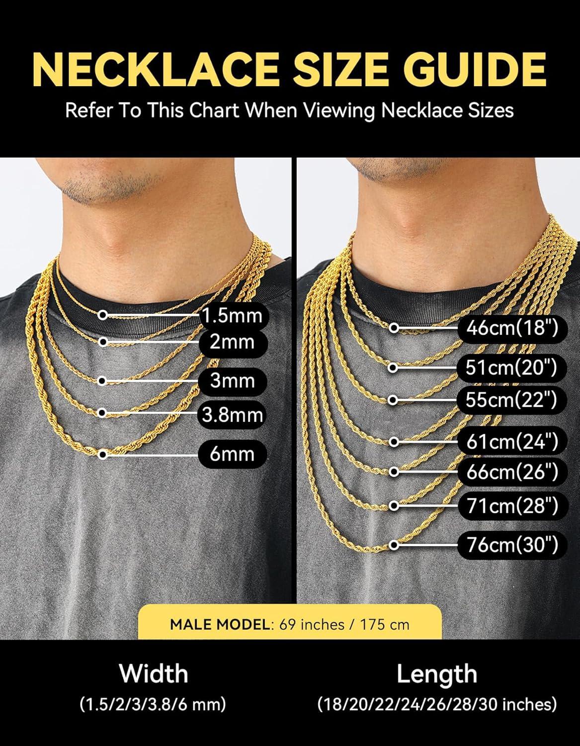 ChainsHouse Rope Chain for Men Women, Stainless Steel Twisted Chain Necklace 1.5mm/2mm/3mm/3.8mm/6mm Width, Black/14K Gold Mens Rope Chains Jewelry 16″-30″, Send Gift Box(b. 3mm width-gold)