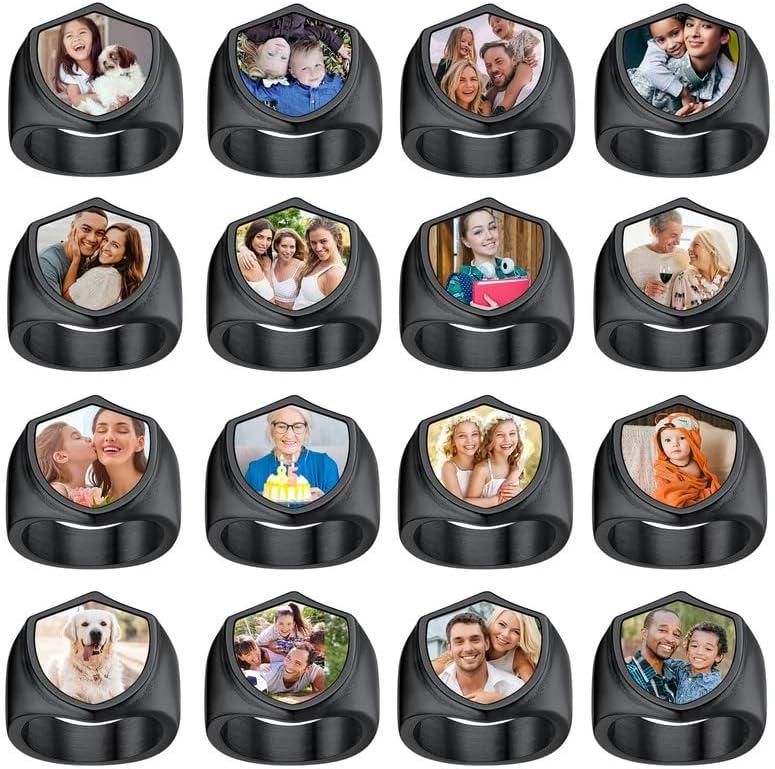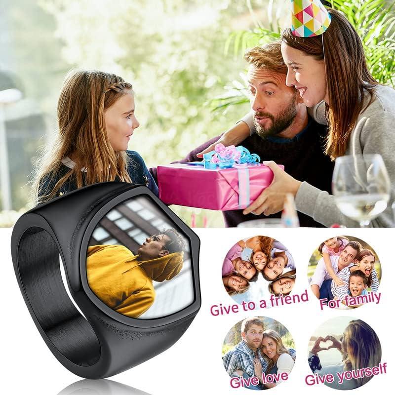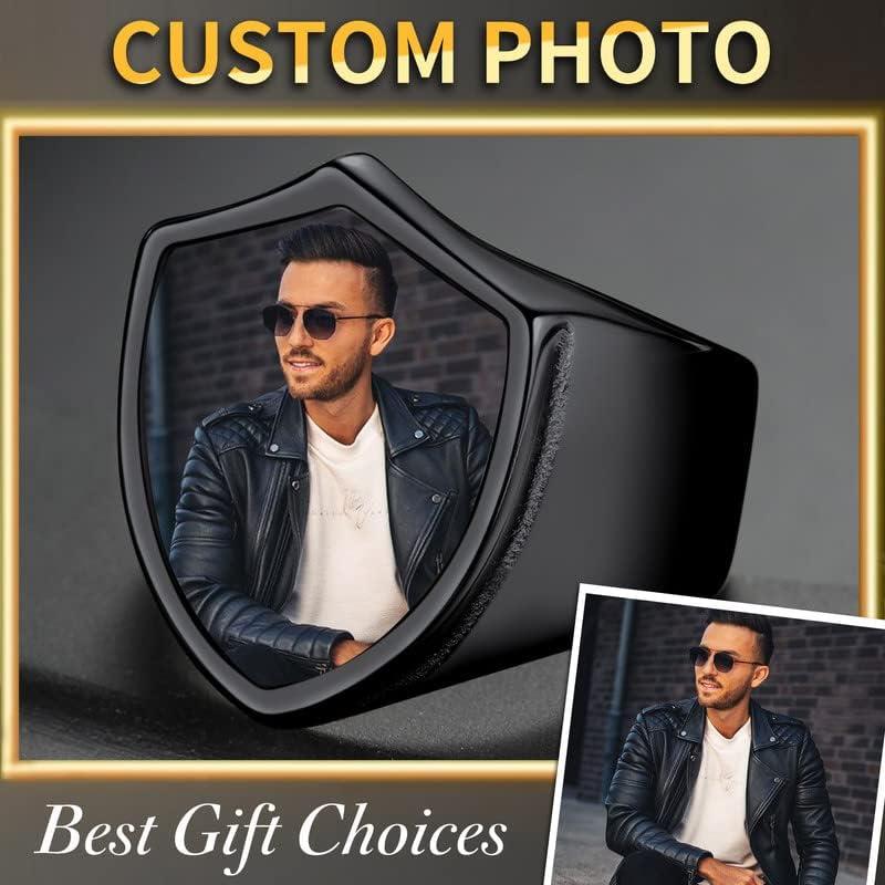 ChainsHouse Signet Rings Solid Polished Stainless Steel Biker Ring for Men Women, 316L Stainless Steel/18K Gold/Black Metal Plated, Text Engraving/Photo Custom, Size 7 to 14, Send Gift Box(e. Shield Photo – Black)