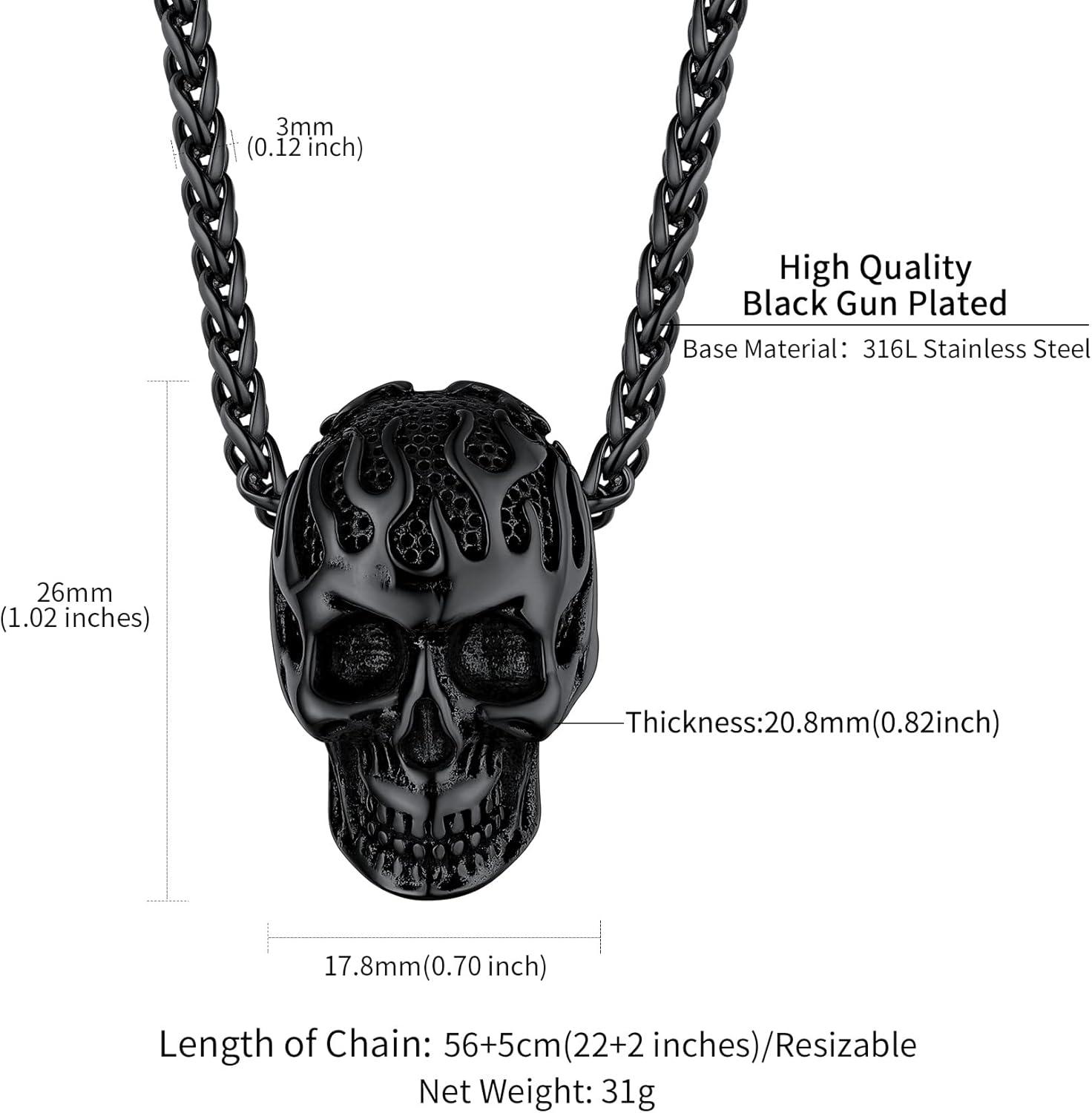 ChainsHouse Skull Necklace for Men, Retro Gothic Punk Jewelry Biker Necklace for Men Women Free Engraving Stainless Steel Dog Tag Pendant Necklace,with Gift Box(01. Flame -Black)