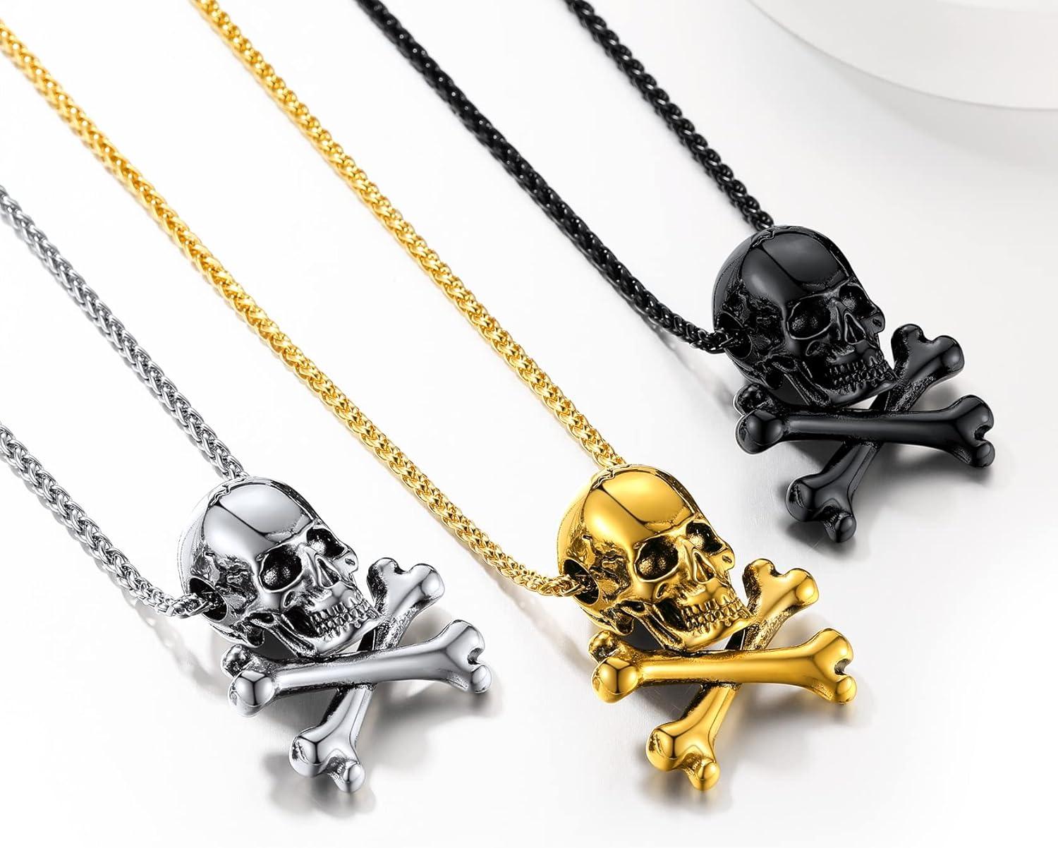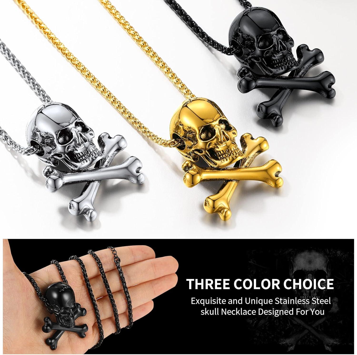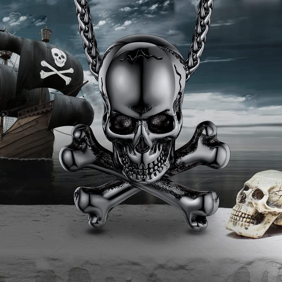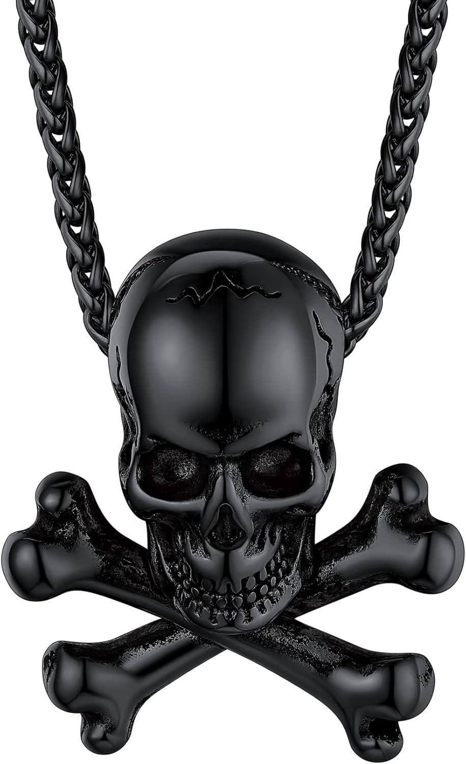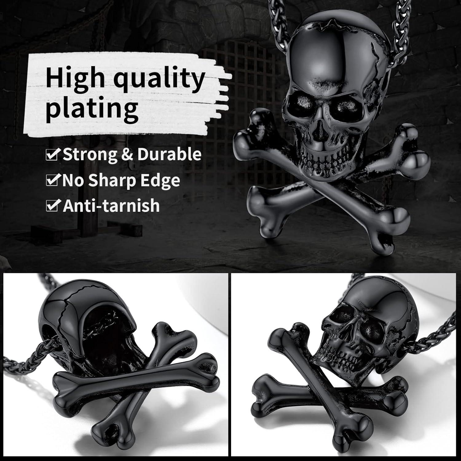 ChainsHouse Skull Necklace for Men, Retro Gothic Punk Jewelry Biker Necklace for Men Women Free Engraving Stainless Steel Dog Tag Pendant Necklace,with Gift Box(02. Crossbone-Black)