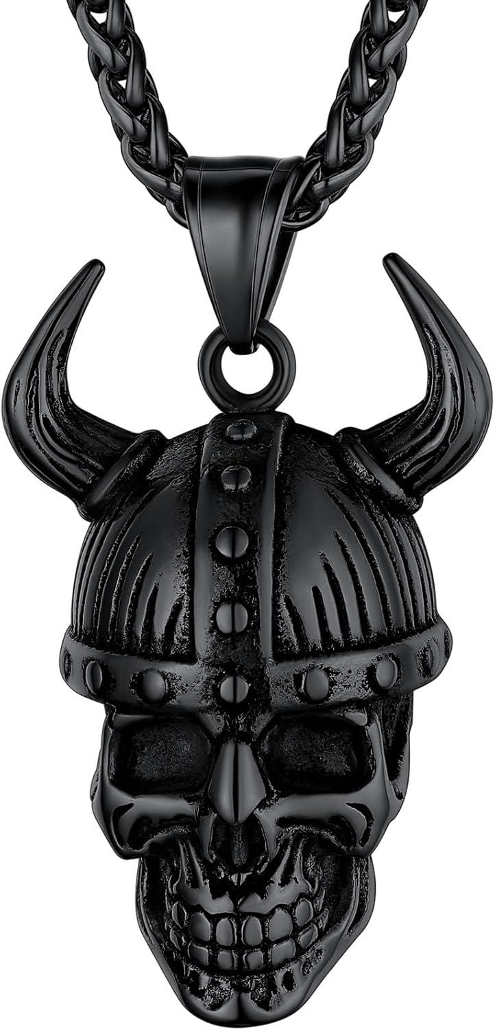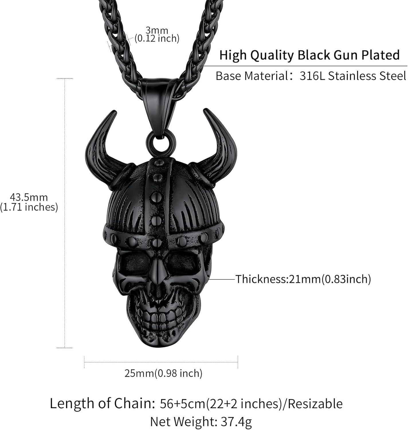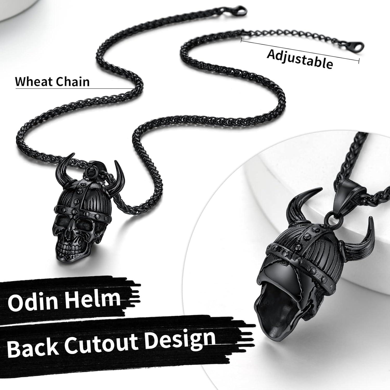 ChainsHouse Skull Necklace for Men, Retro Gothic Punk Jewelry Biker Necklace for Men Women Free Engraving Stainless Steel Dog Tag Pendant Necklace,with Gift Box(06. Odin Helmet-Black)