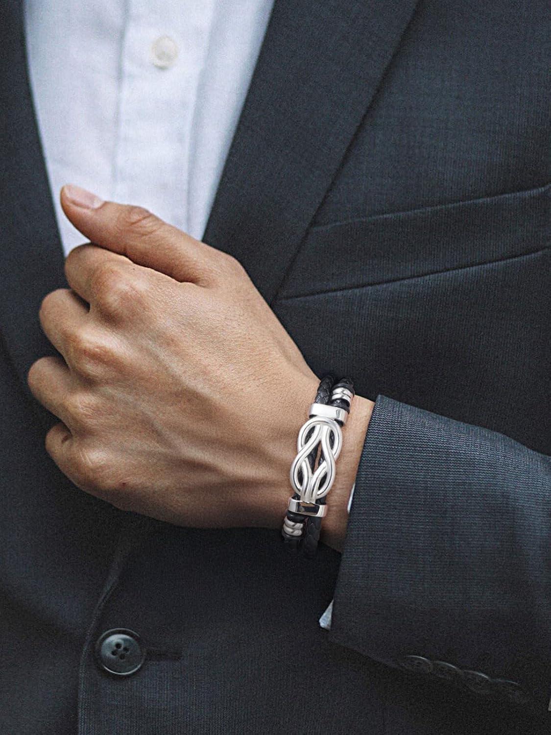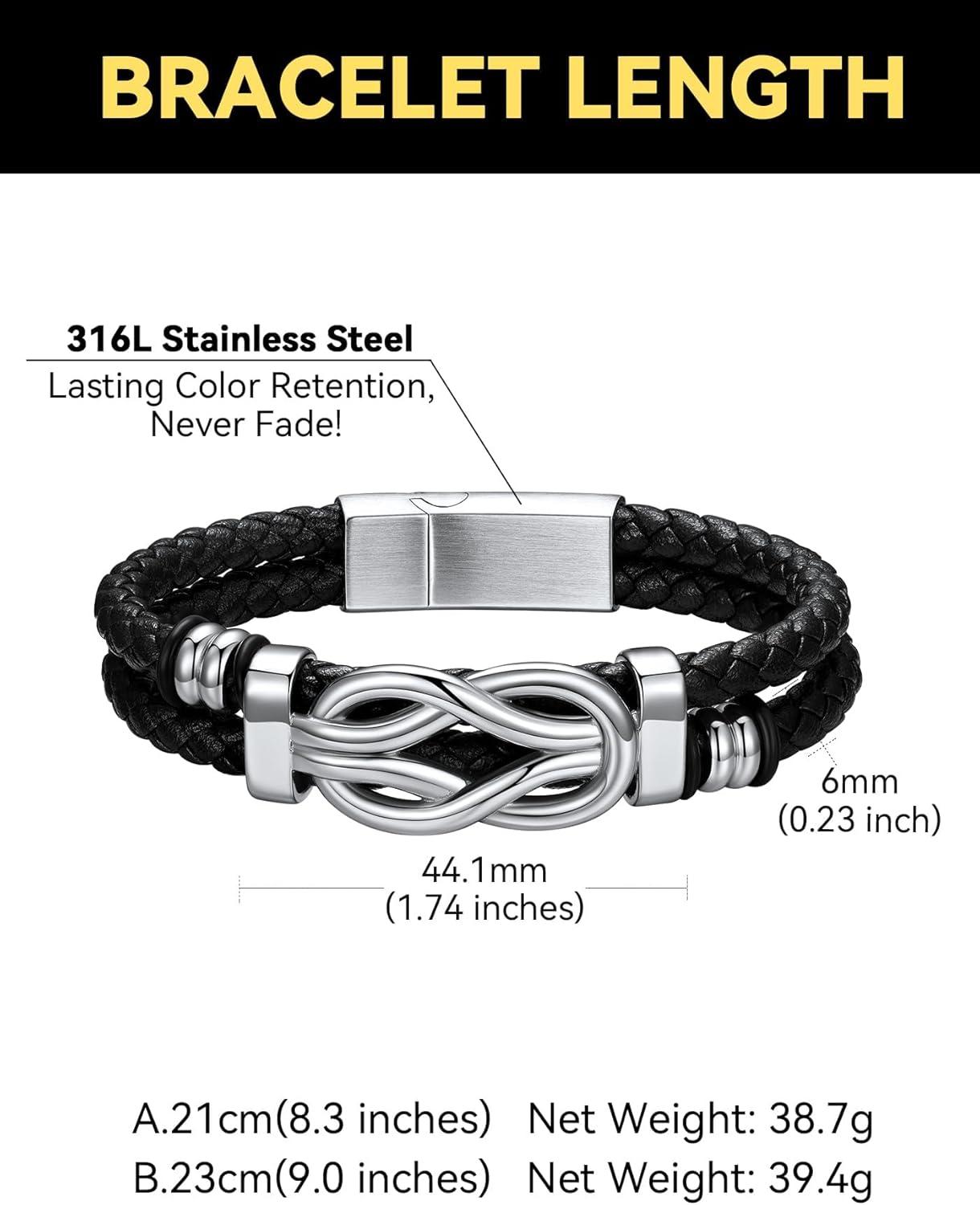 ChainsHouse Square Love Knot Bracelets for Men Braided Leather Stainless Steel Infinity Bracelets with Love Message Card Aniversary Birthday Gift for Men/Love/Husband/Dad(06-Always Remember-Braided)