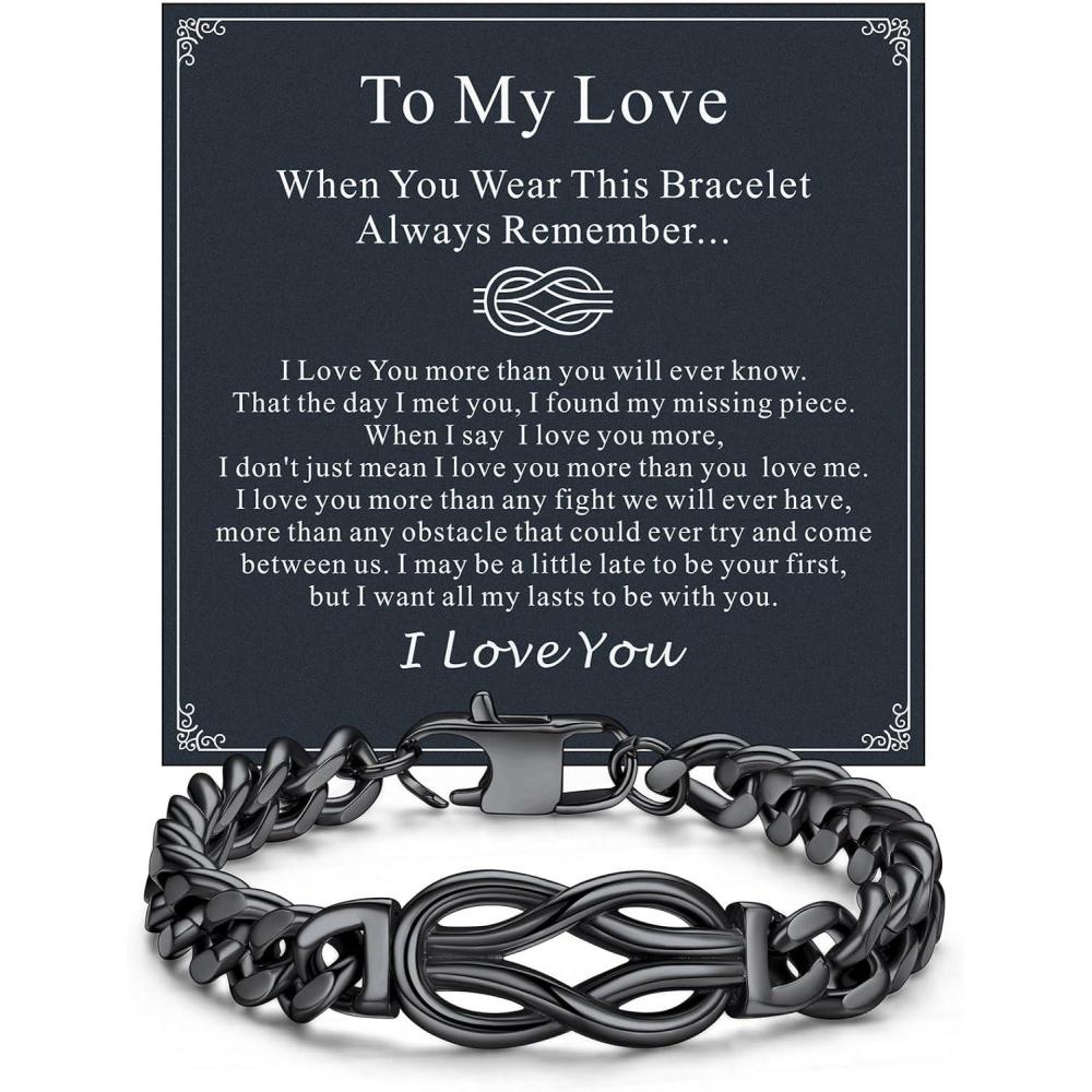 ChainsHouse Square Love Knot Bracelets for Men Braided Leather Stainless Steel Infinity Bracelets with Love Message Card Aniversary Birthday Gift for Men/Love/Husband/Dad(15-To My Love-Black)