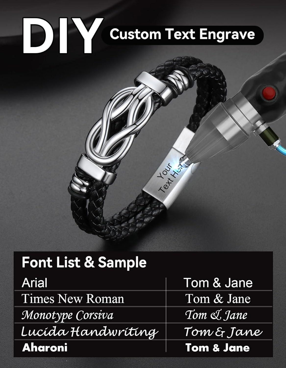 ChainsHouse Square Love Knot Bracelets for Men Braided Leather Stainless Steel Infinity Bracelets with Love Message Card Aniversary Birthday Gift for Men/Love/Husband/Dad(22-Custom-Braided)